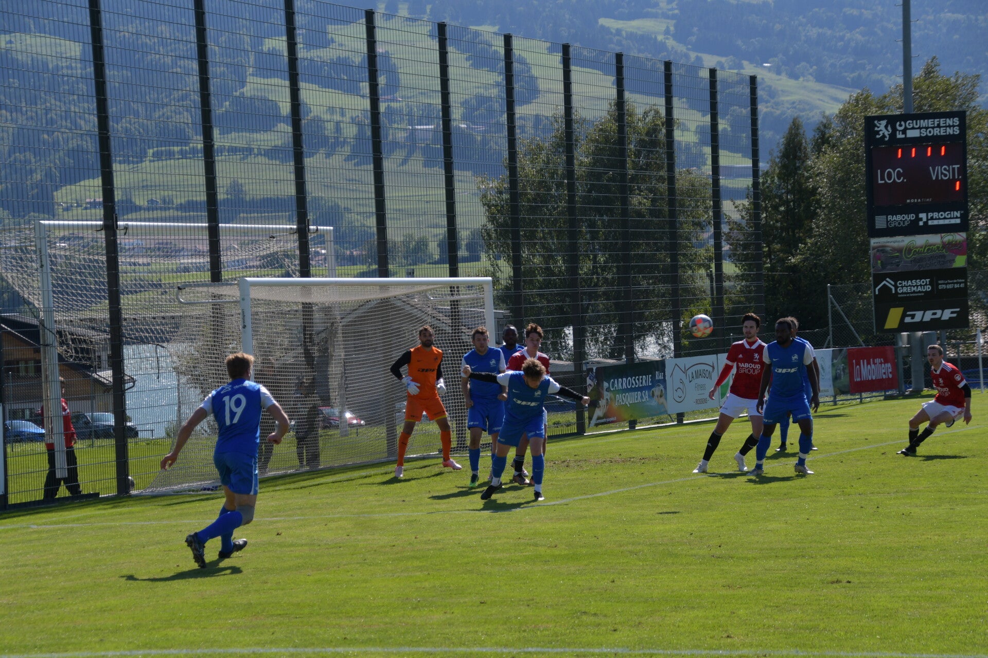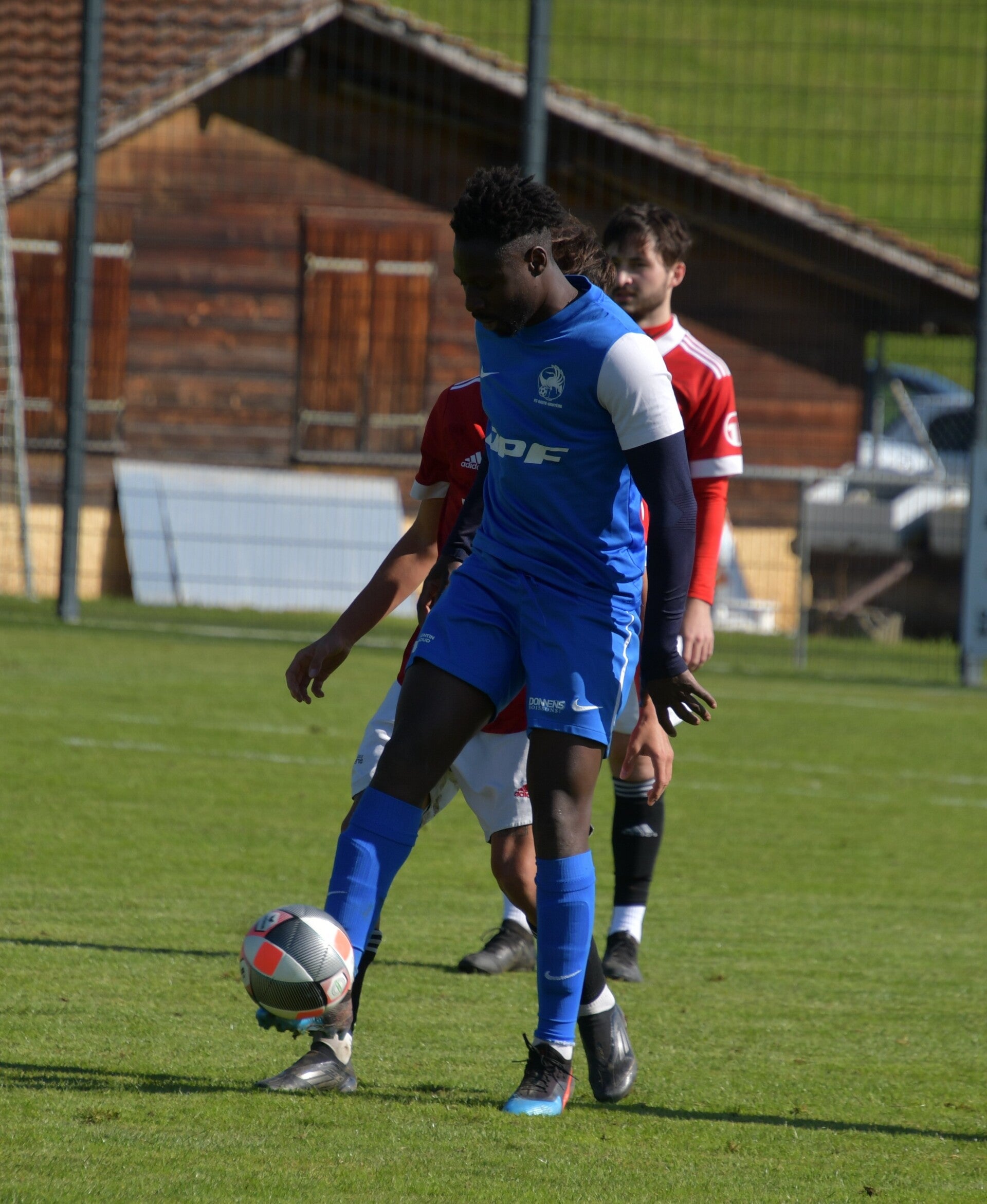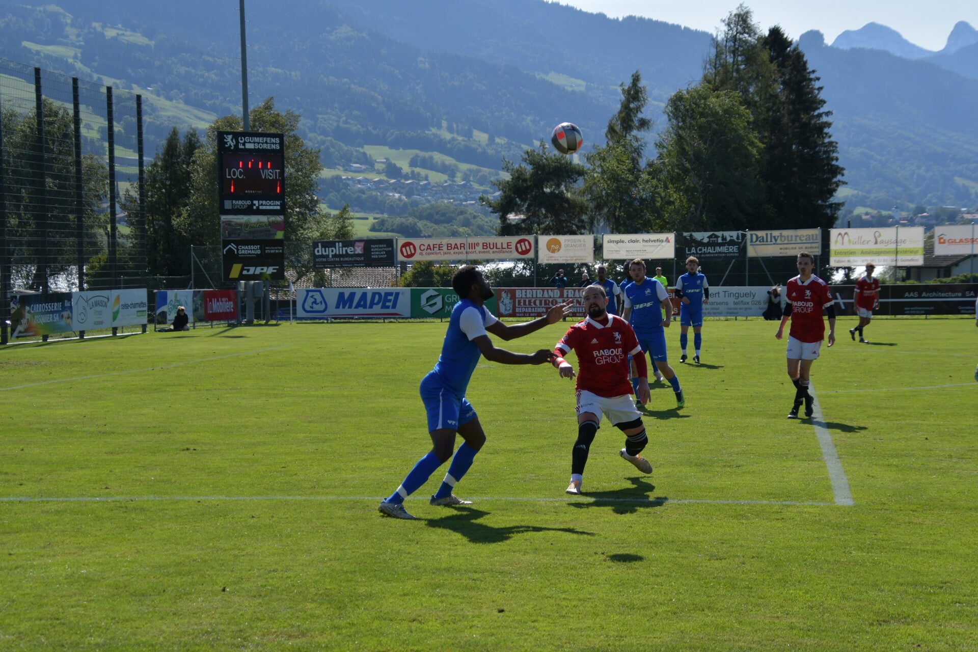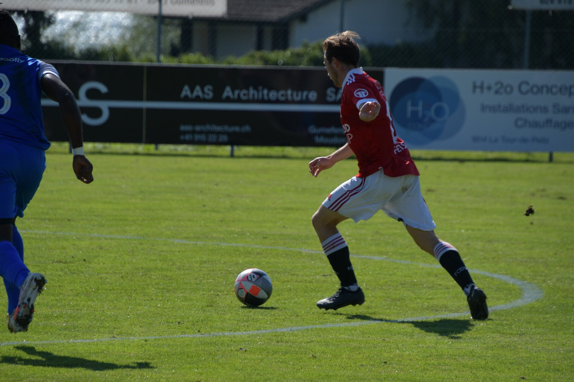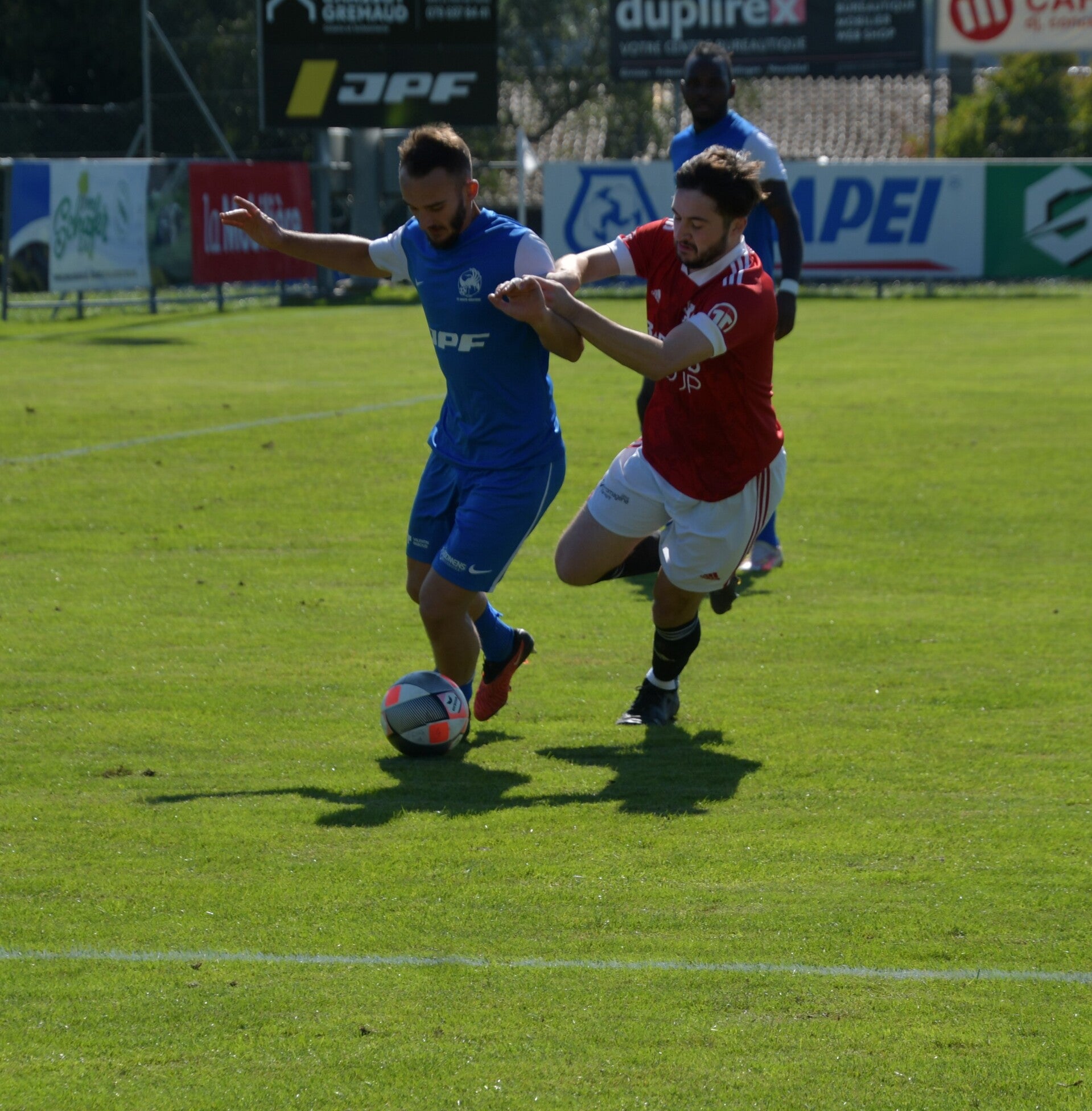 Le derby de la Gruyère, disputé lors de cette 5e journée du championnat de 2e ligue fribourgeoise, a vu l'équipe de Gumefens/Sorens dominer nettement le FC Haute-Gruyère dans une rencontre marquée par une froide bise. Dès le coup d'envoi, les joueurs de Gumefens/Sorens se sont précipités à l'assaut des buts adverses. Leurs efforts ont rapidement été récompensés grâce à un coup franc astucieusement joué aux abords des 20 mètres. Alors que la défense de Haute-Gruyère, peinait à se replacer, Batiste Maillard, bien décalé, n'a eu aucun mal à trouver le chemin des filets pour ouvrir le score dans une cage vide.