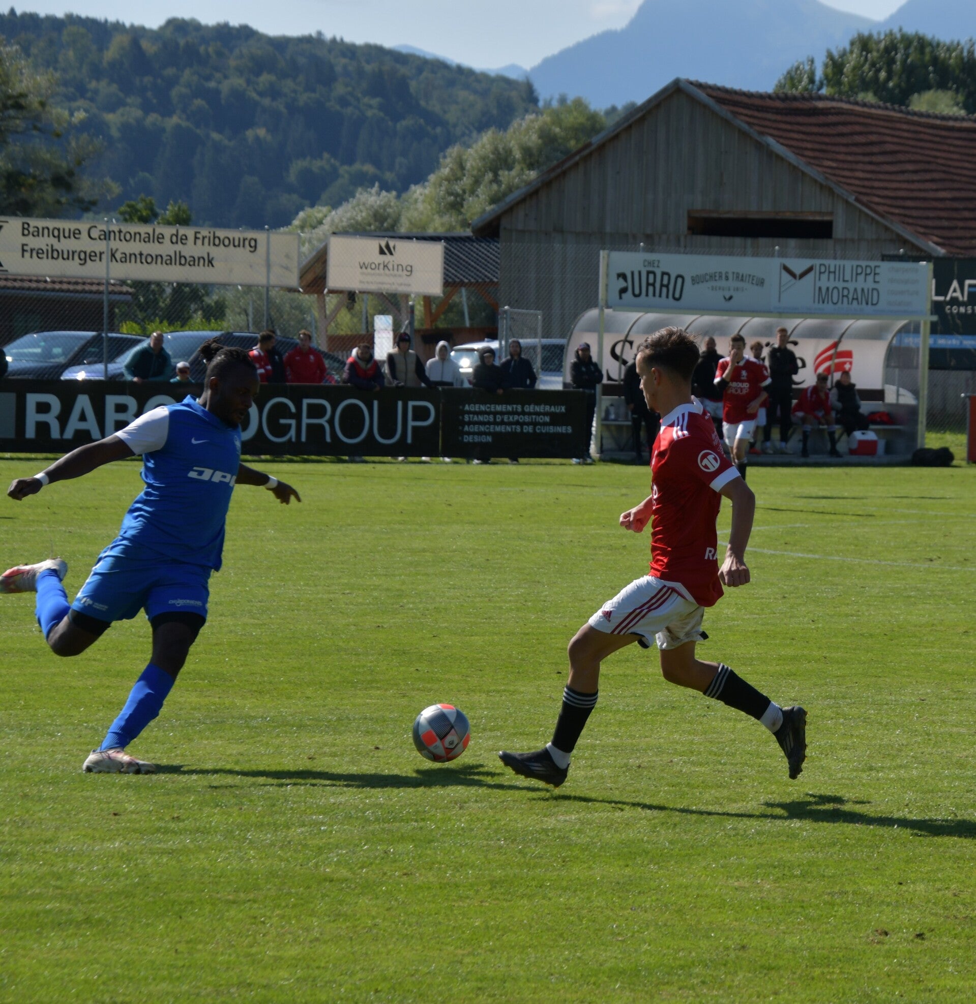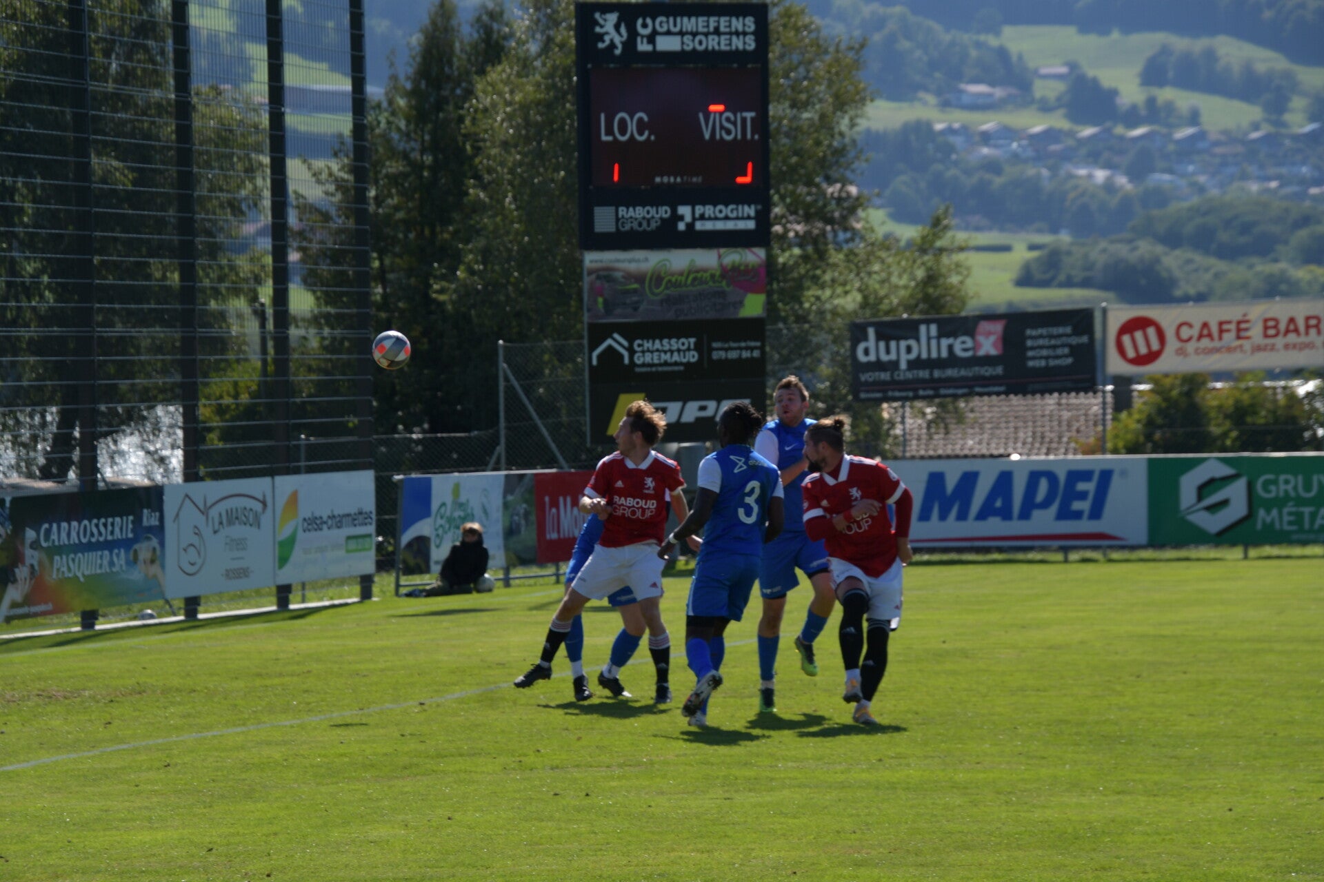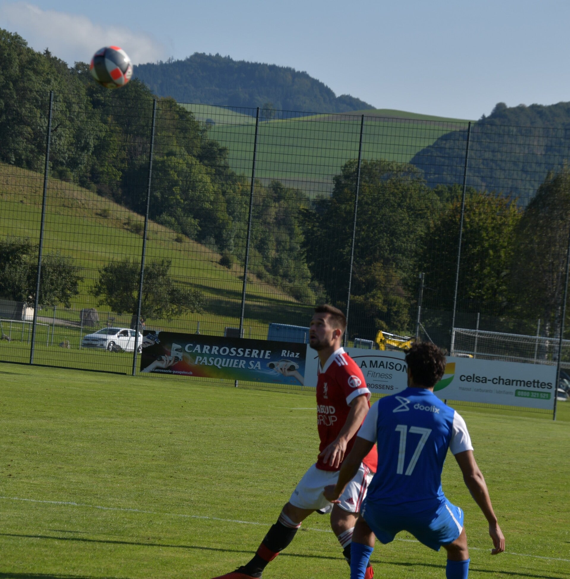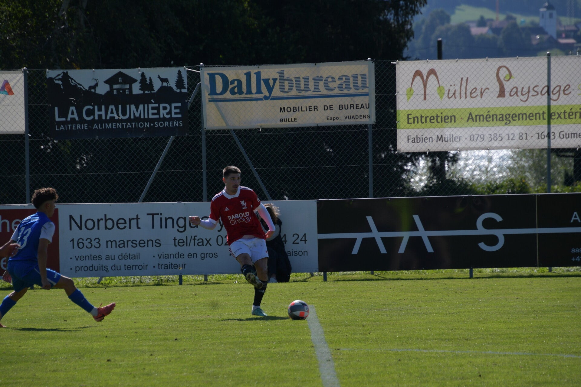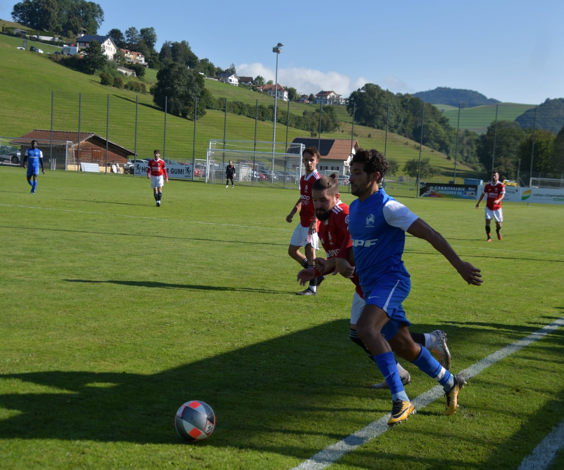 Le derby de la Gruyère, disputé lors de cette 5e journée du championnat de 2e ligue fribourgeoise, a vu l'équipe de Gumefens/Sorens dominer nettement le FC Haute-Gruyère dans une rencontre marquée par une froide bise. Dès le coup d'envoi, les joueurs de Gumefens/Sorens se sont précipités à l'assaut des buts adverses. Leurs efforts ont rapidement été récompensés grâce à un coup franc astucieusement joué aux abords des 20 mètres. Alors que la défense de Haute-Gruyère, peinait à se replacer, Batiste Maillard, bien décalé, n'a eu aucun mal à trouver le chemin des filets pour ouvrir le score dans une cage vide.