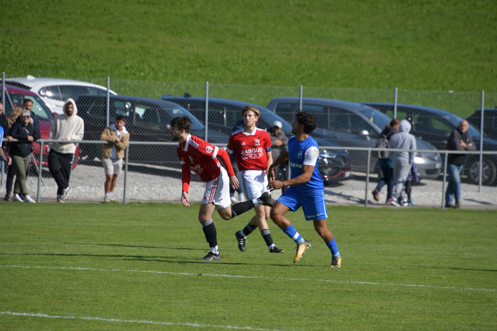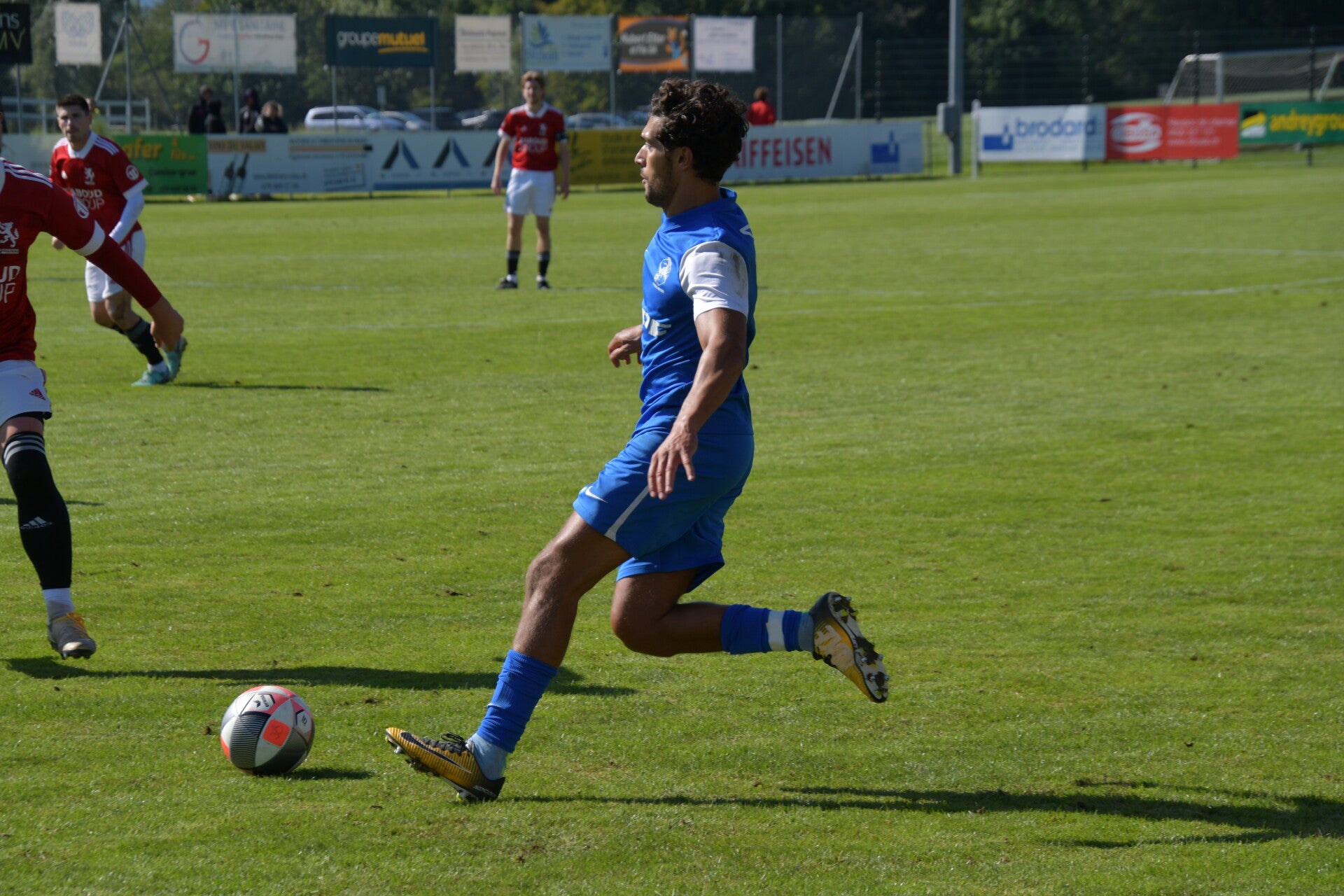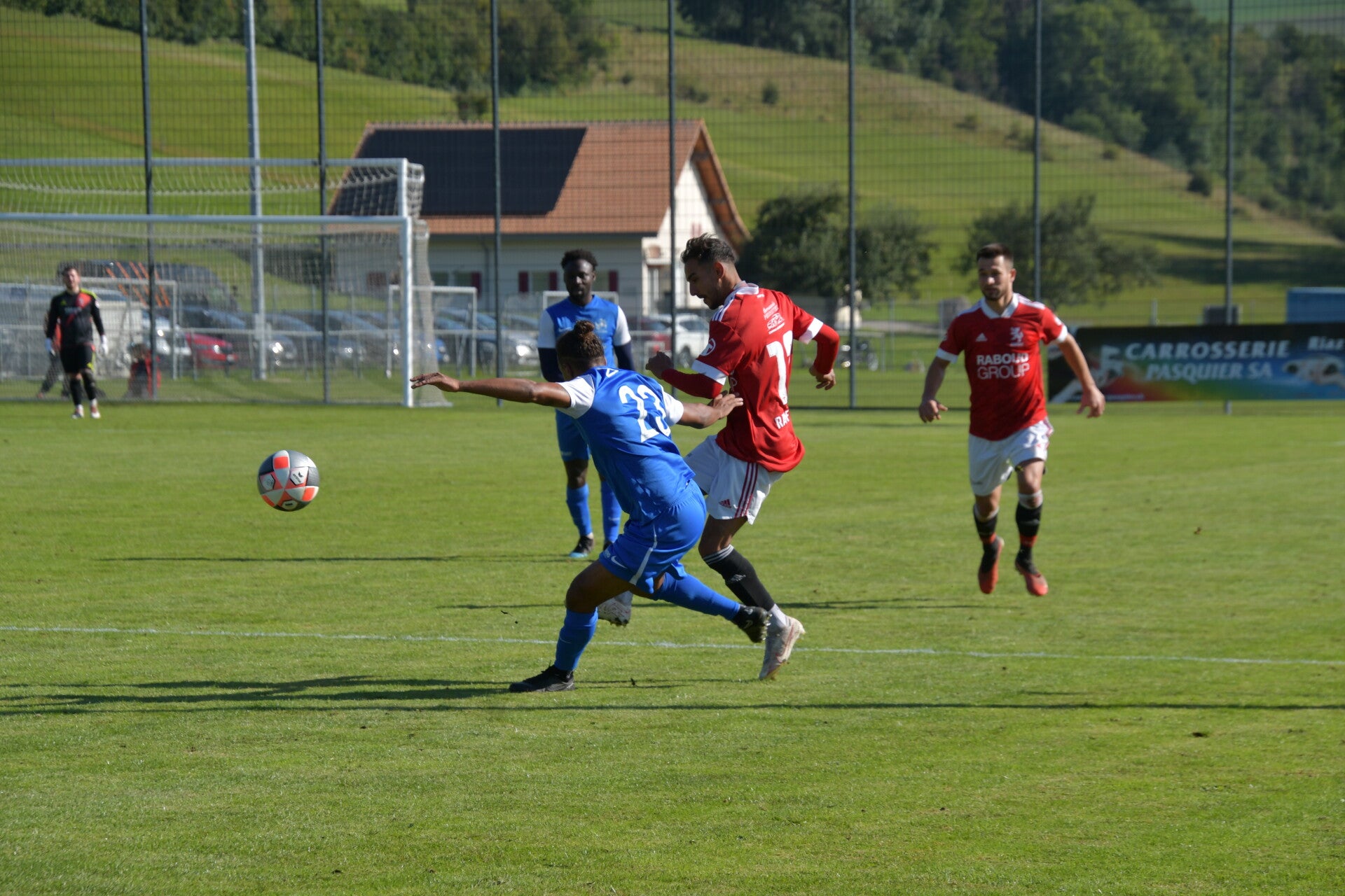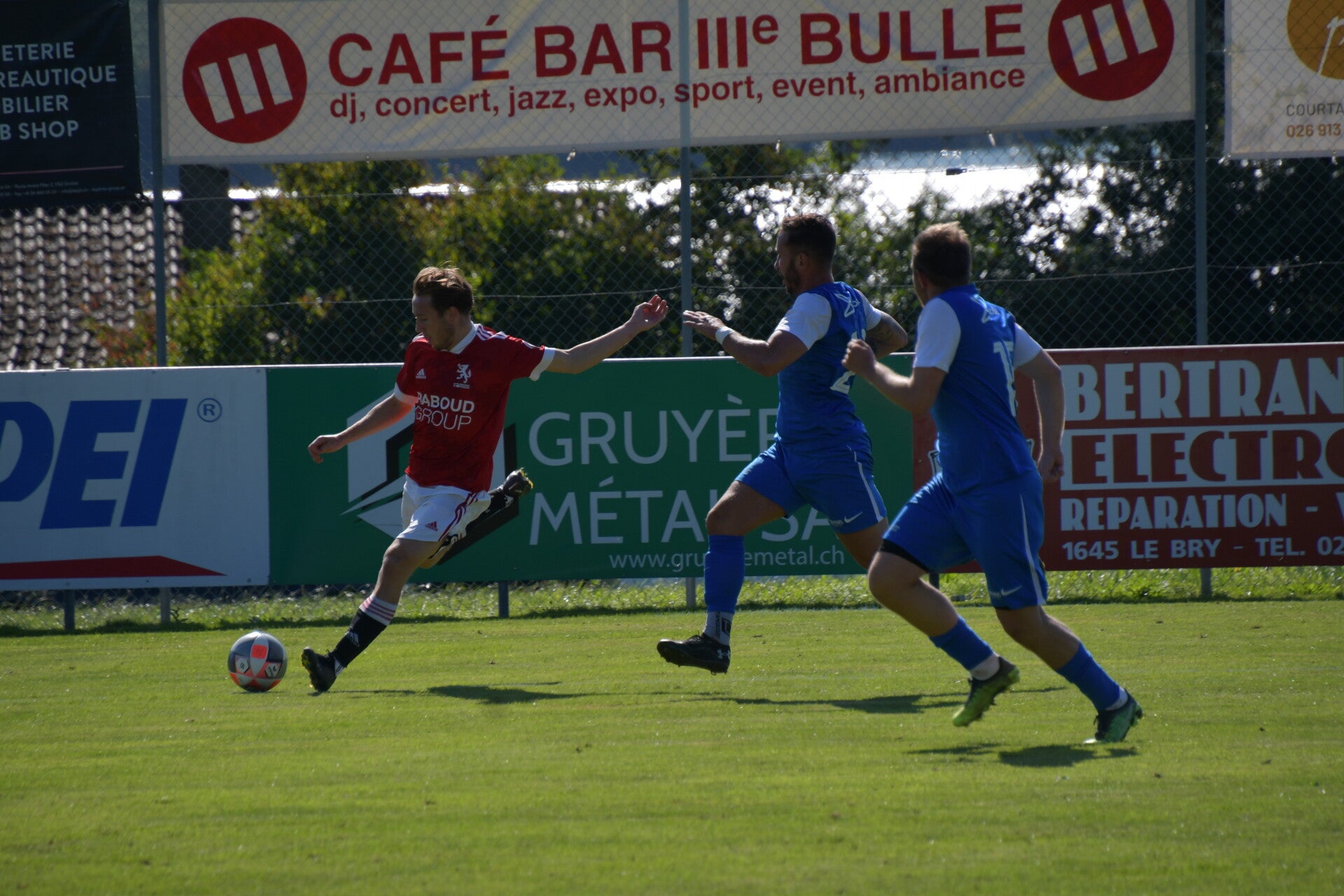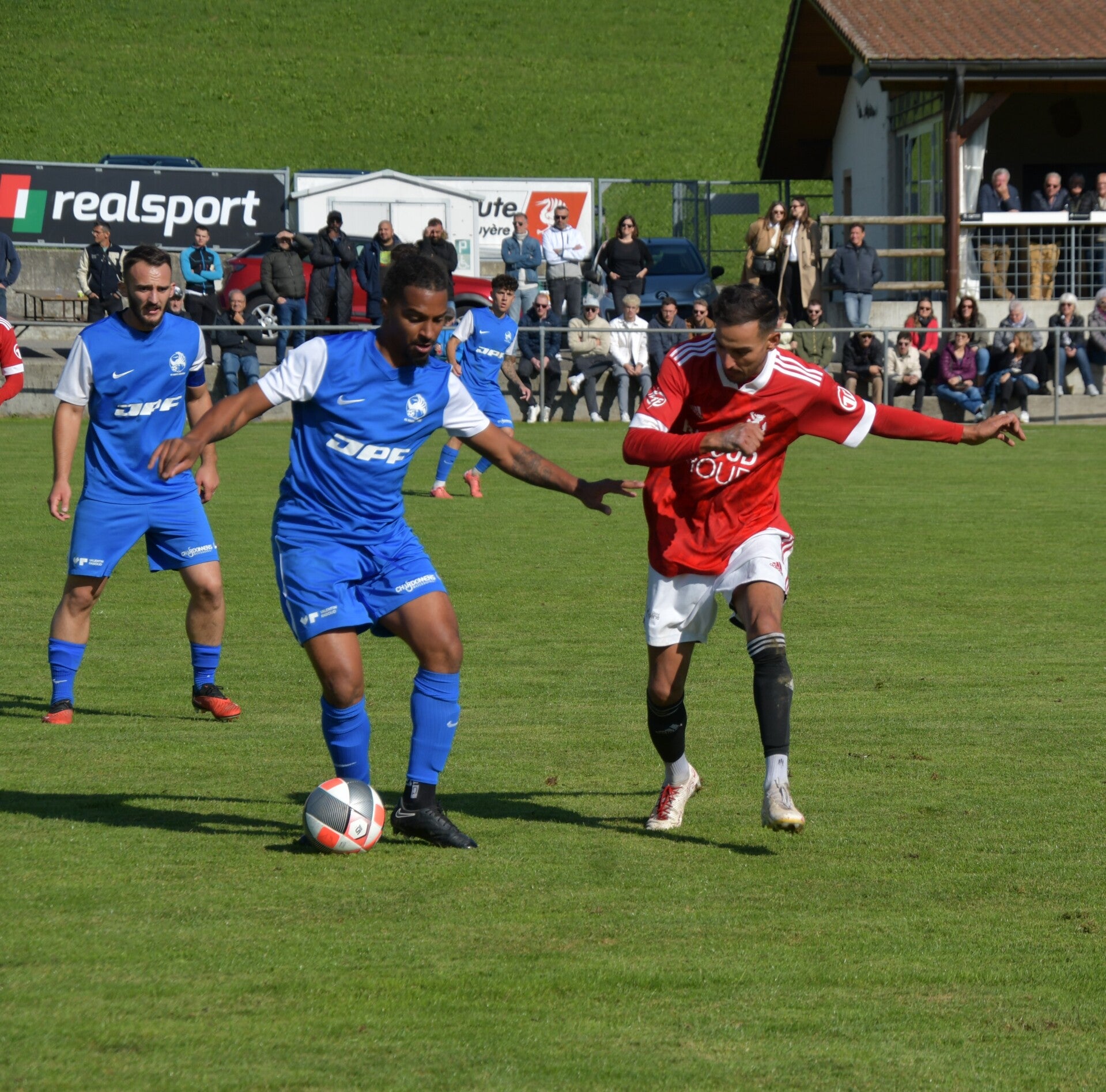Le derby de la Gruyère, disputé lors de cette 5e journée du championnat de 2e ligue fribourgeoise, a vu l'équipe de Gumefens/Sorens dominer nettement le FC Haute-Gruyère dans une rencontre marquée par une froide bise. Dès le coup d'envoi, les joueurs de Gumefens/Sorens se sont précipités à l'assaut des buts adverses. Leurs efforts ont rapidement été récompensés grâce à un coup franc astucieusement joué aux abords des 20 mètres. Alors que la défense de Haute-Gruyère, peinait à se replacer, Batiste Maillard, bien décalé, n'a eu aucun mal à trouver le chemin des filets pour ouvrir le score dans une cage vide.