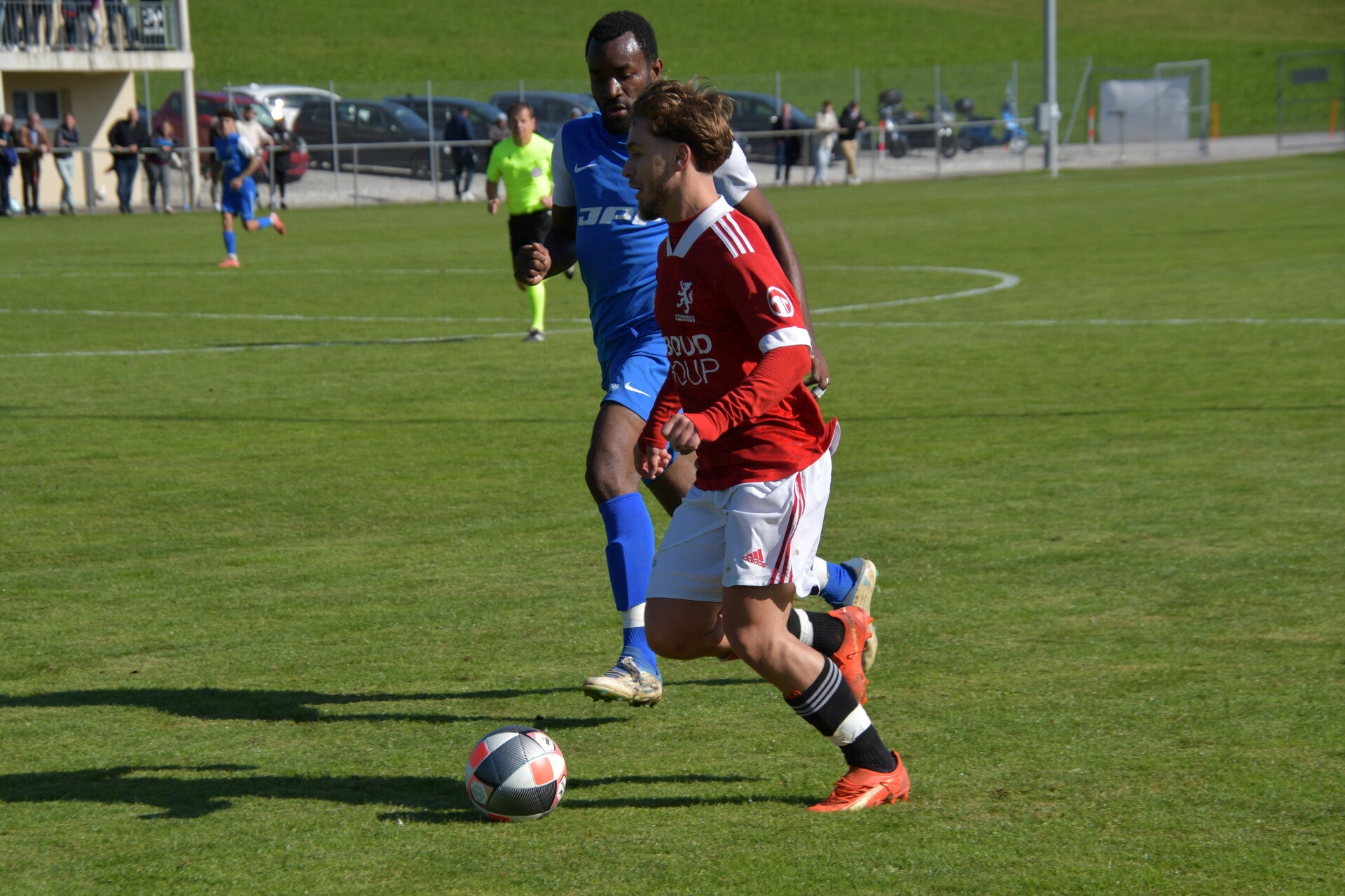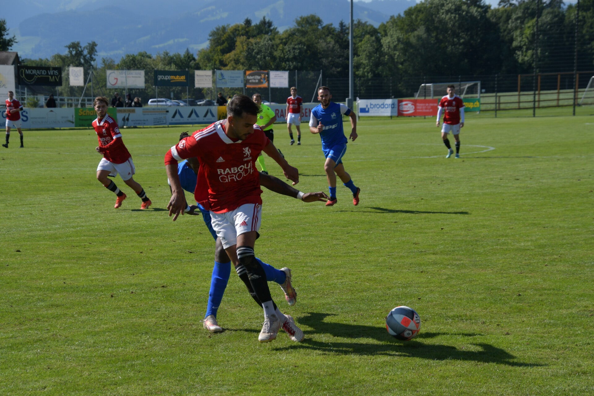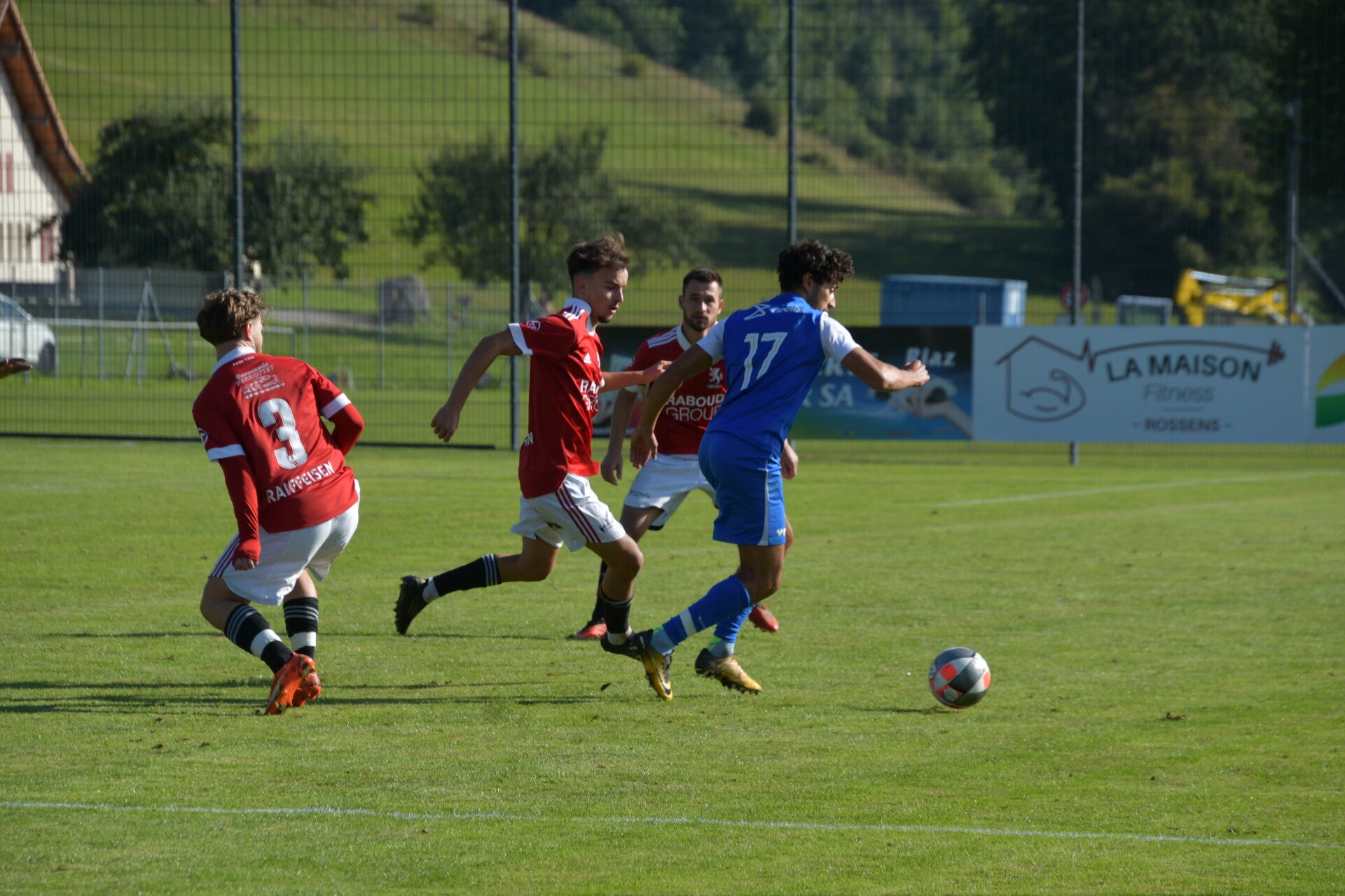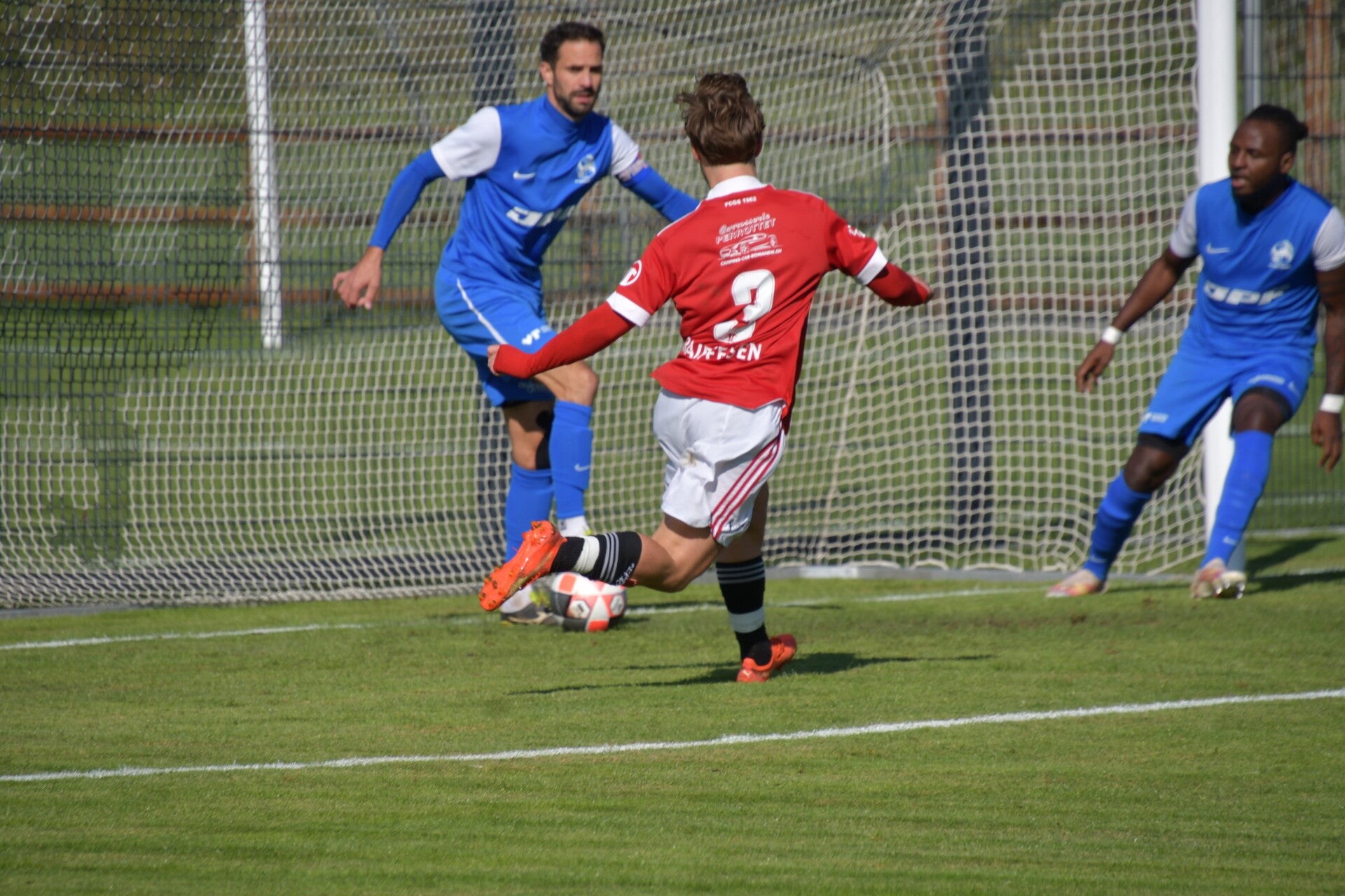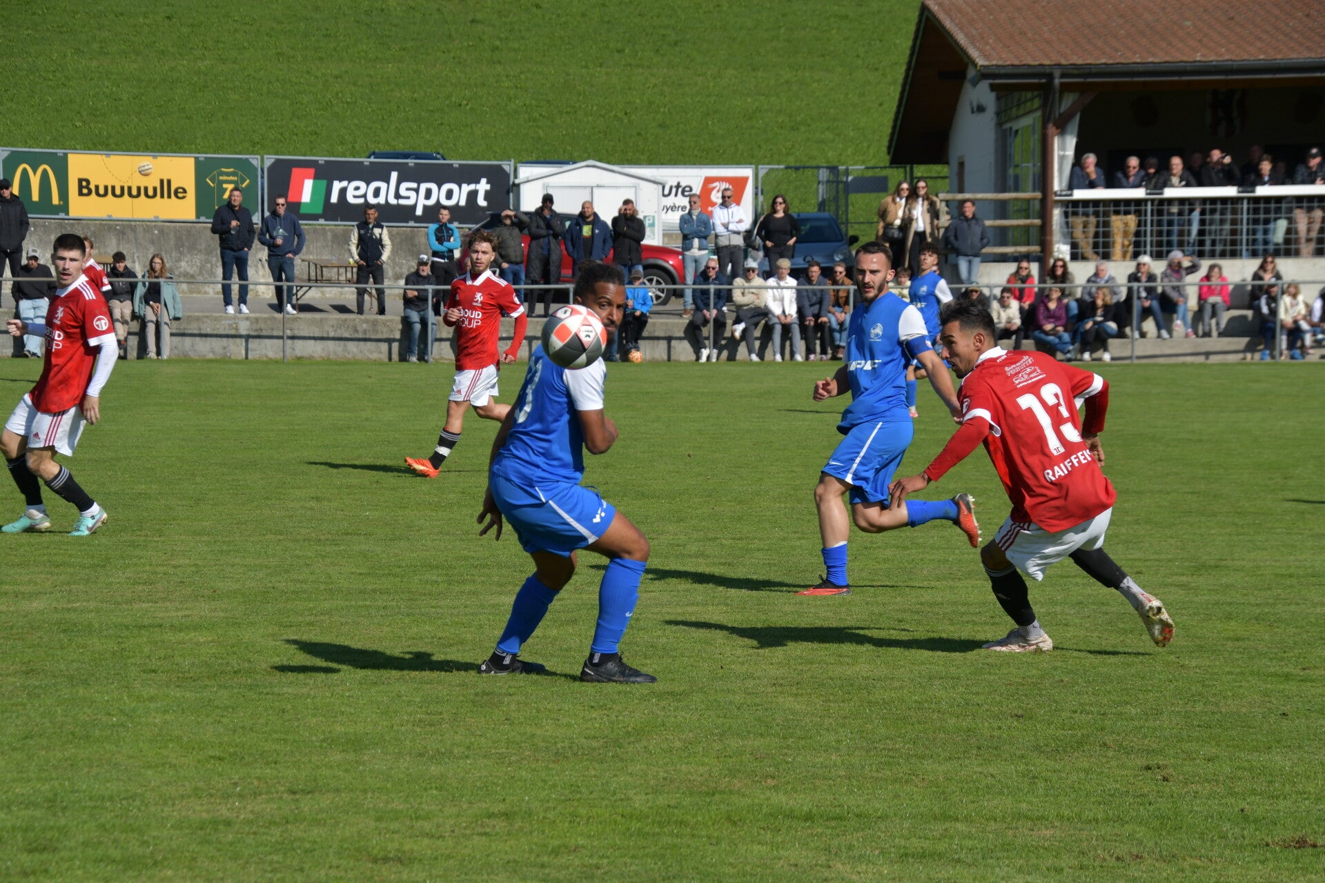 Le derby de la Gruyère, disputé lors de cette 5e journée du championnat de 2e ligue fribourgeoise, a vu l'équipe de Gumefens/Sorens dominer nettement le FC Haute-Gruyère dans une rencontre marquée par une froide bise. Dès le coup d'envoi, les joueurs de Gumefens/Sorens se sont précipités à l'assaut des buts adverses. Leurs efforts ont rapidement été récompensés grâce à un coup franc astucieusement joué aux abords des 20 mètres. Alors que la défense de Haute-Gruyère, peinait à se replacer, Batiste Maillard, bien décalé, n'a eu aucun mal à trouver le chemin des filets pour ouvrir le score dans une cage vide.