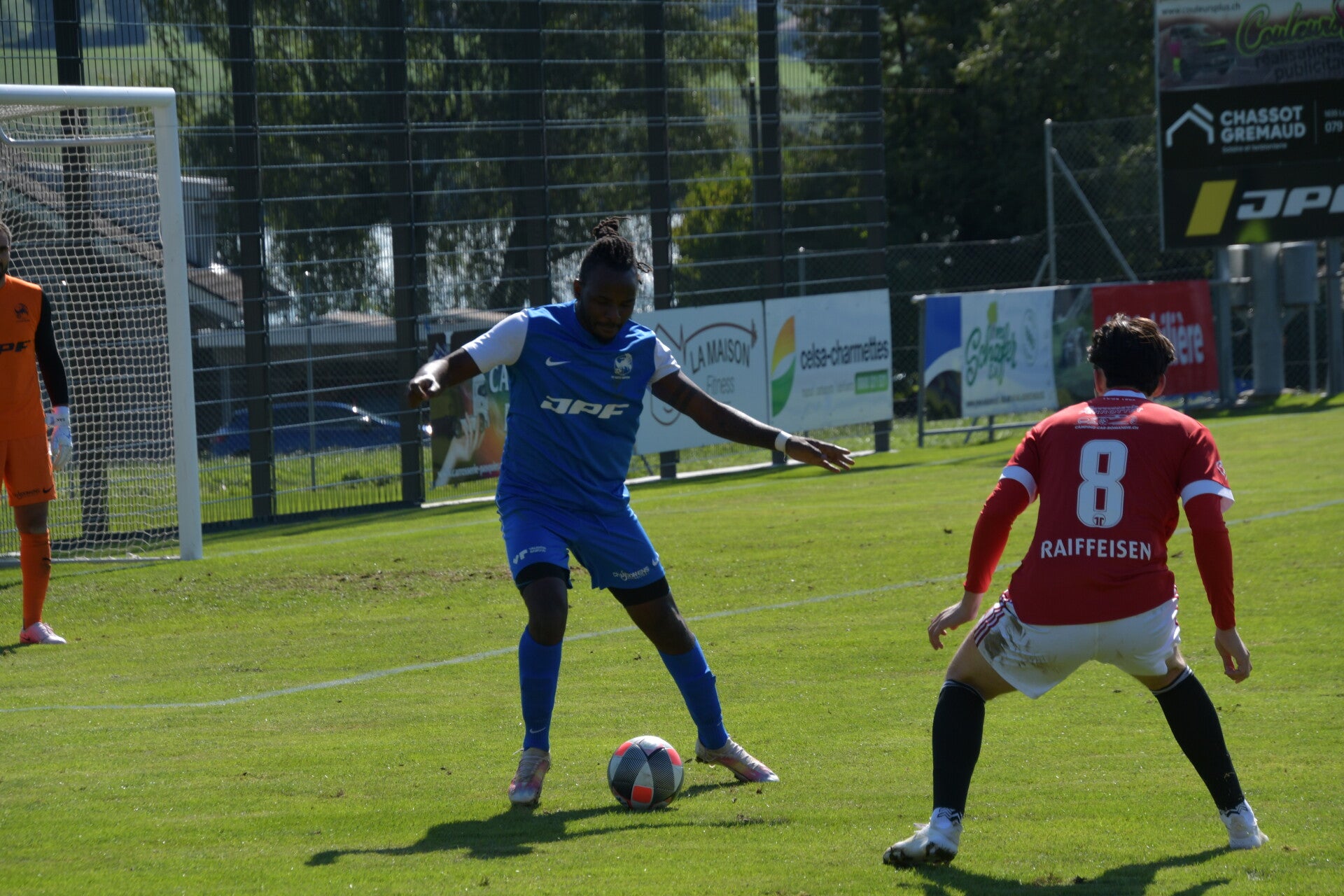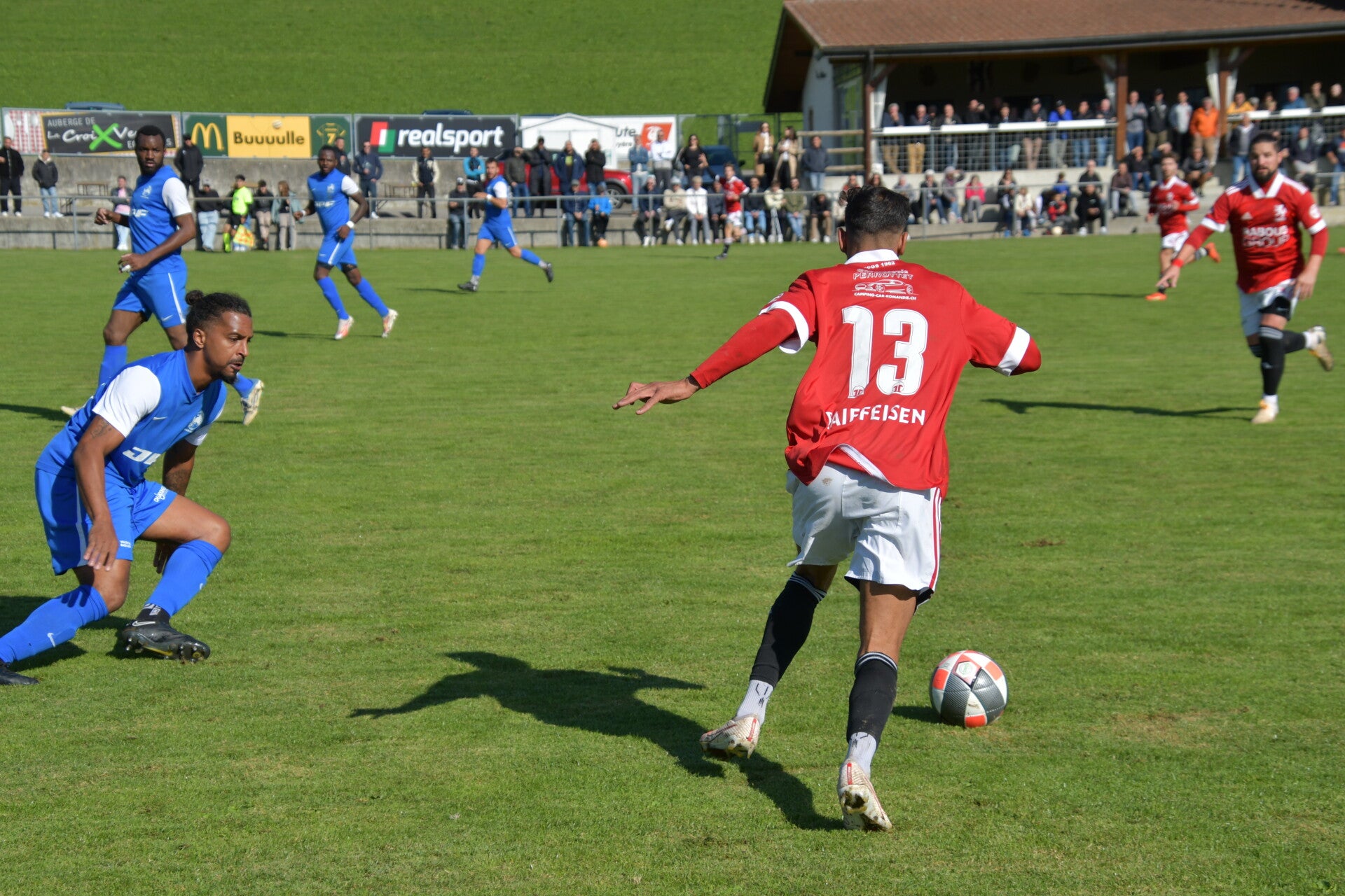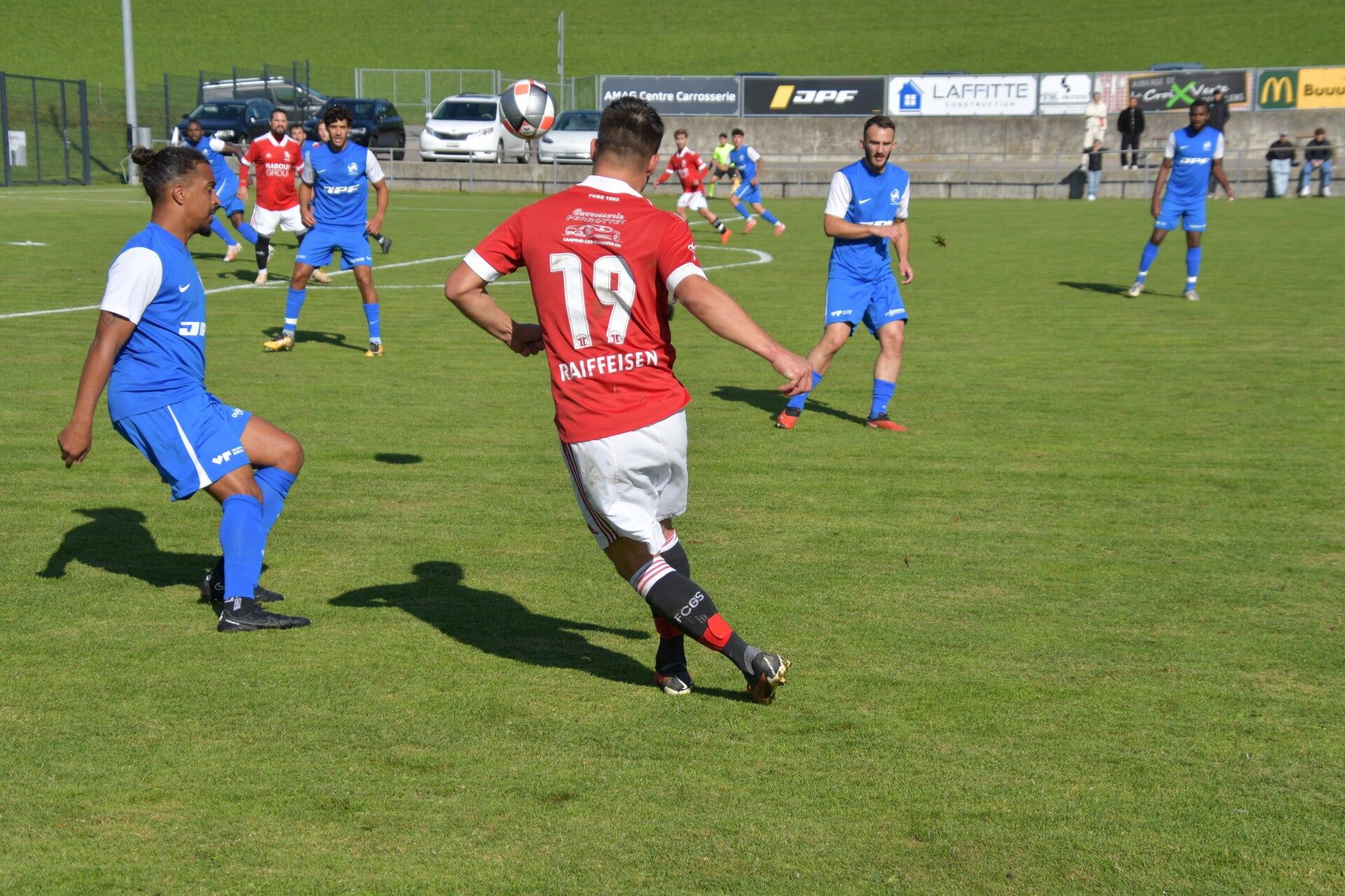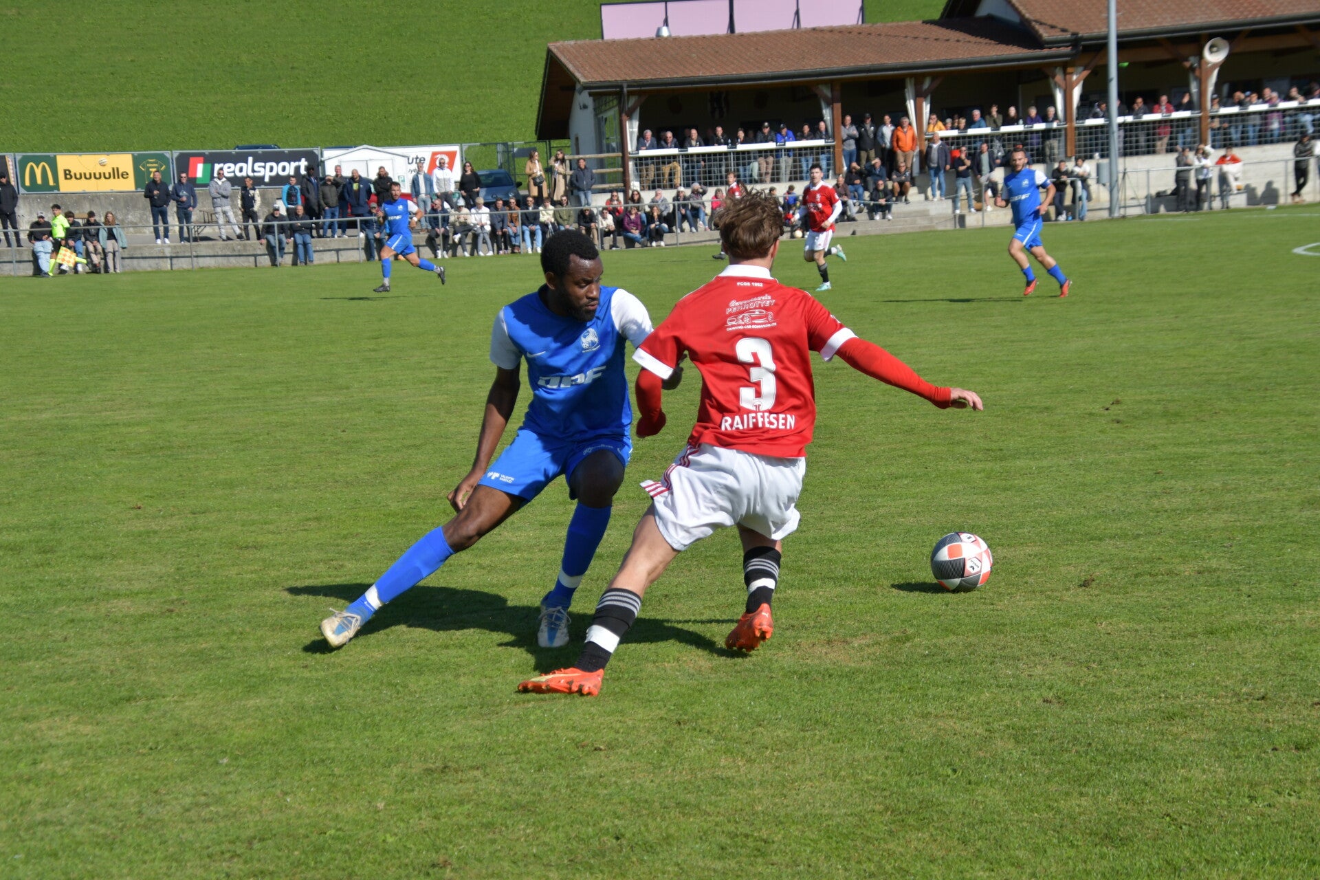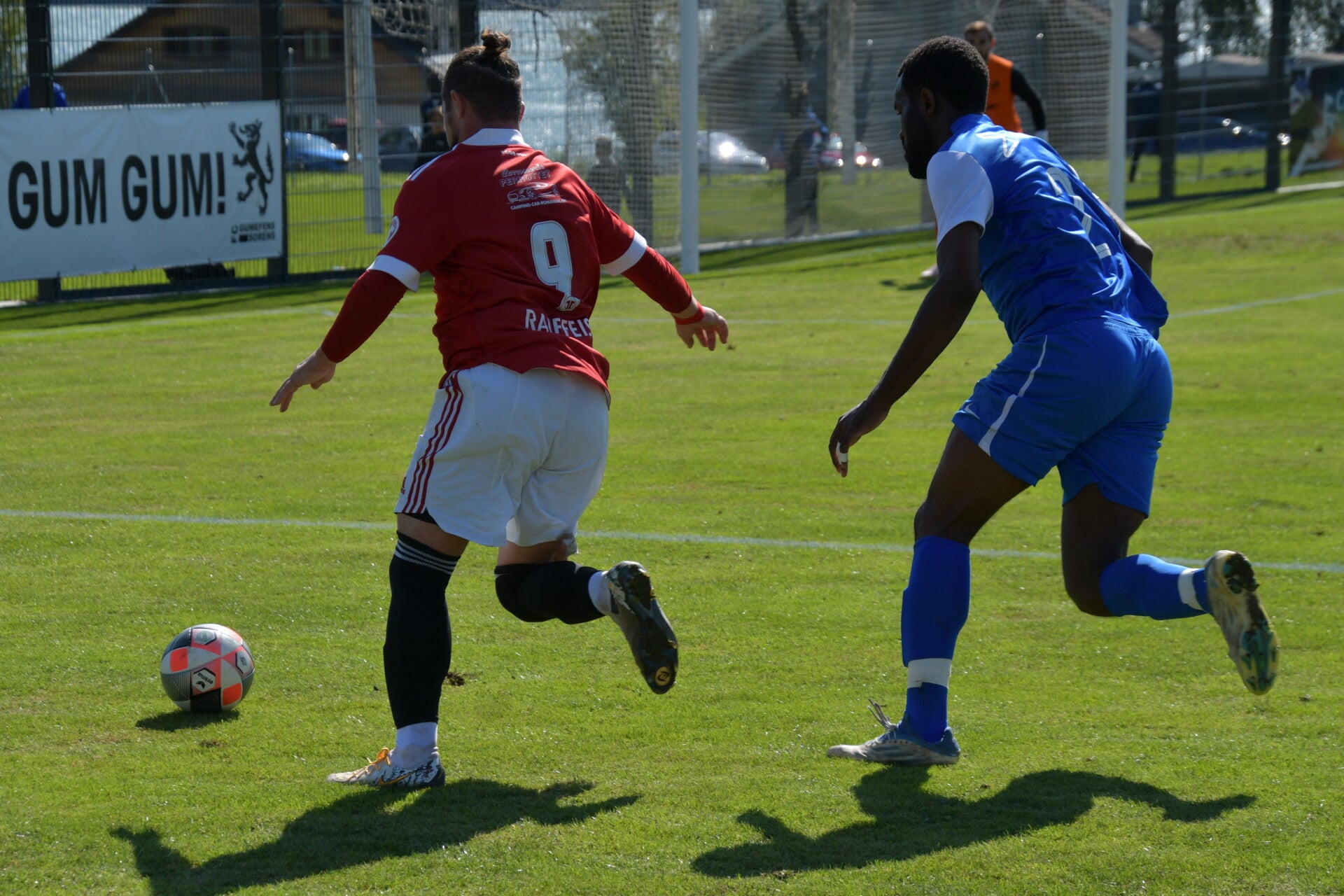 Le derby de la Gruyère, disputé lors de cette 5e journée du championnat de 2e ligue fribourgeoise, a vu l'équipe de Gumefens/Sorens dominer nettement le FC Haute-Gruyère dans une rencontre marquée par une froide bise. Dès le coup d'envoi, les joueurs de Gumefens/Sorens se sont précipités à l'assaut des buts adverses. Leurs efforts ont rapidement été récompensés grâce à un coup franc astucieusement joué aux abords des 20 mètres. Alors que la défense de Haute-Gruyère, peinait à se replacer, Batiste Maillard, bien décalé, n'a eu aucun mal à trouver le chemin des filets pour ouvrir le score dans une cage vide.