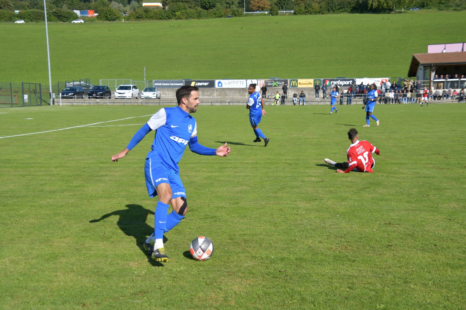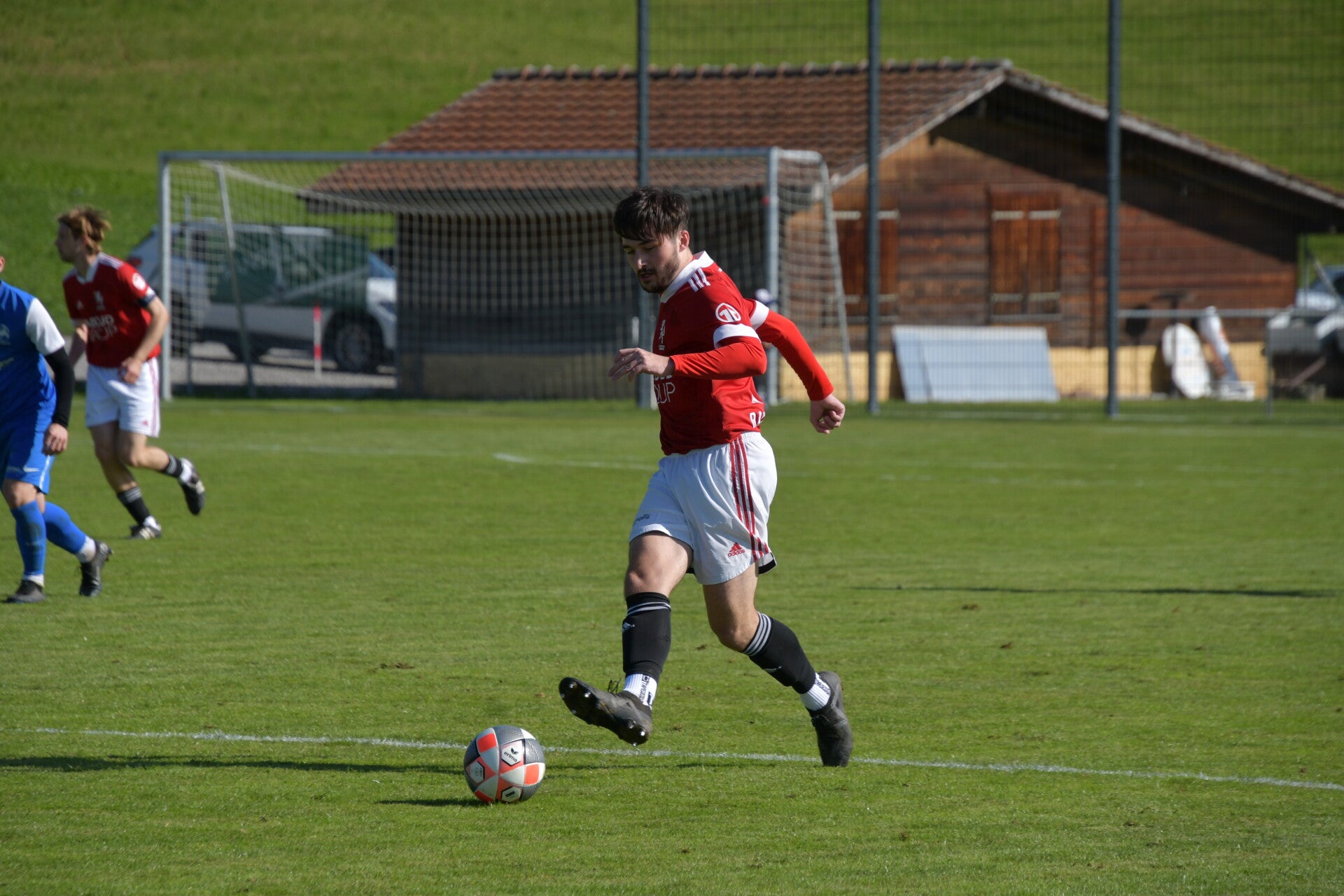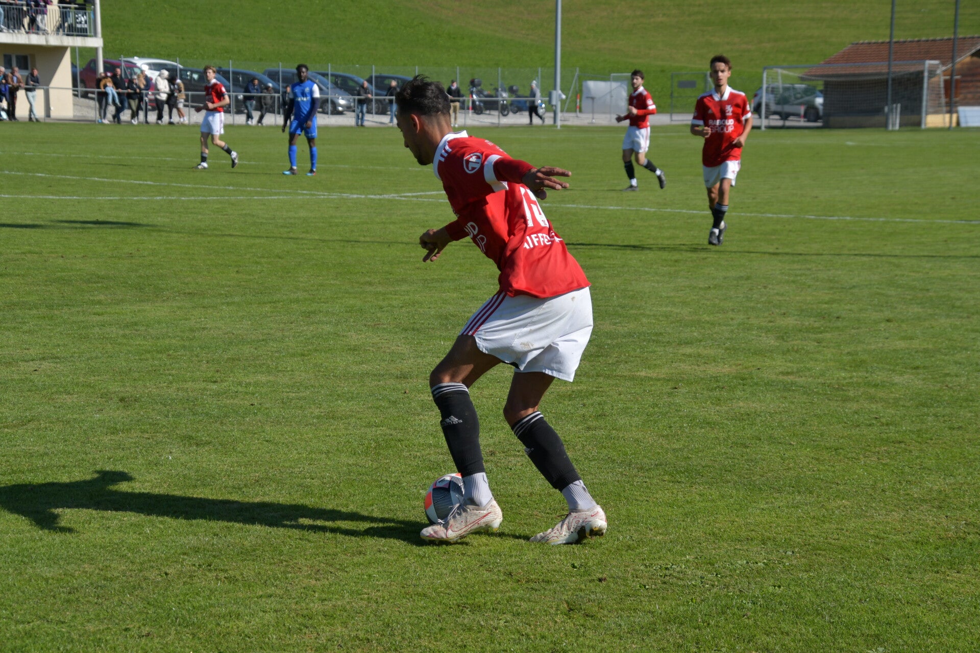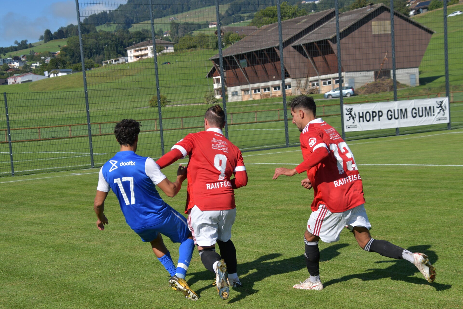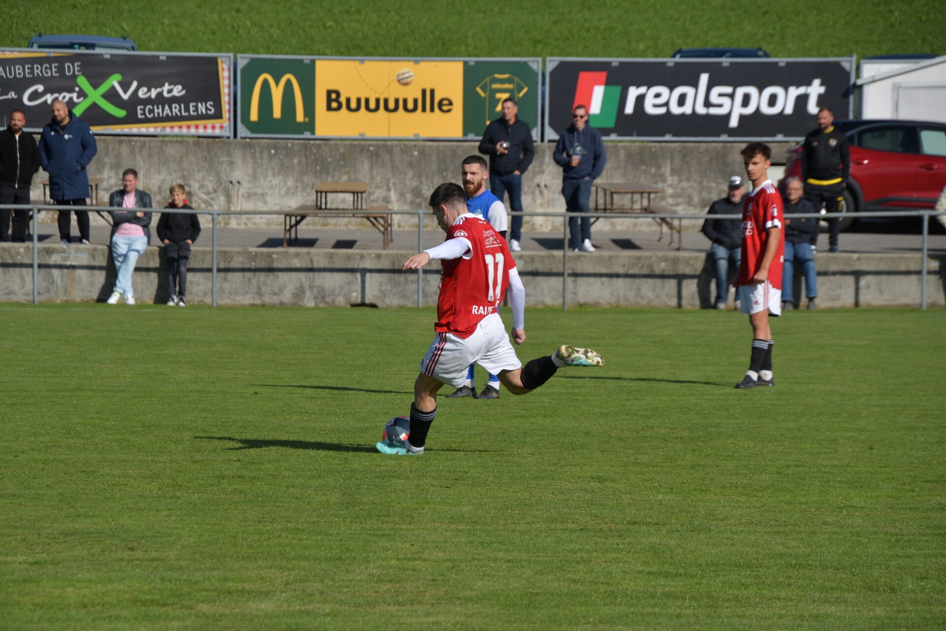 Le derby de la Gruyère, disputé lors de cette 5e journée du championnat de 2e ligue fribourgeoise, a vu l'équipe de Gumefens/Sorens dominer nettement le FC Haute-Gruyère dans une rencontre marquée par une froide bise. Dès le coup d'envoi, les joueurs de Gumefens/Sorens se sont précipités à l'assaut des buts adverses. Leurs efforts ont rapidement été récompensés grâce à un coup franc astucieusement joué aux abords des 20 mètres. Alors que la défense de Haute-Gruyère, peinait à se replacer, Batiste Maillard, bien décalé, n'a eu aucun mal à trouver le chemin des filets pour ouvrir le score dans une cage vide.
