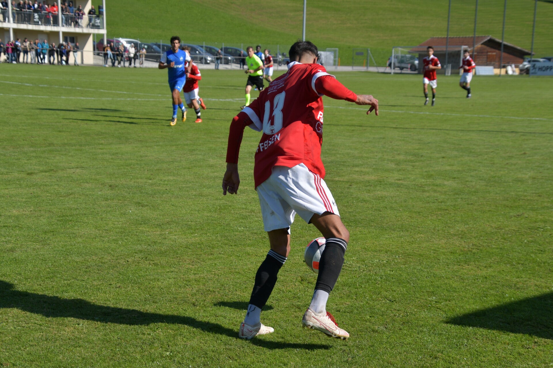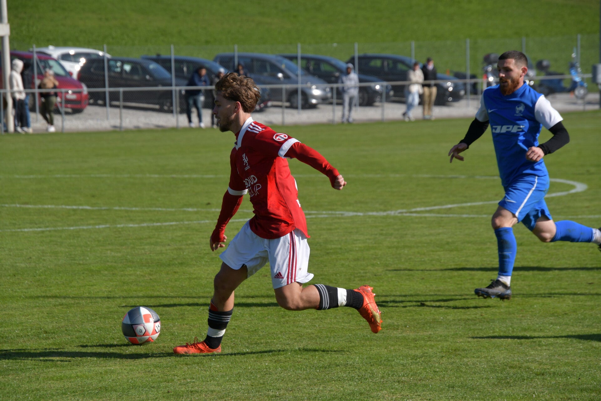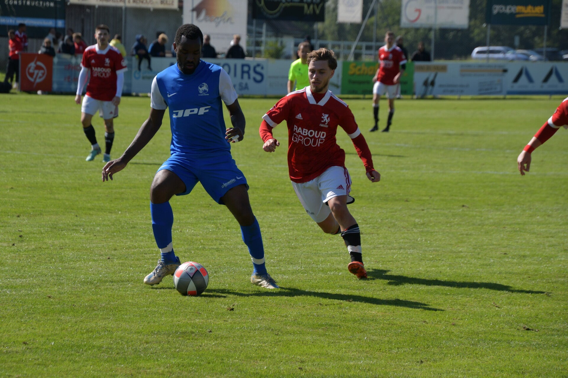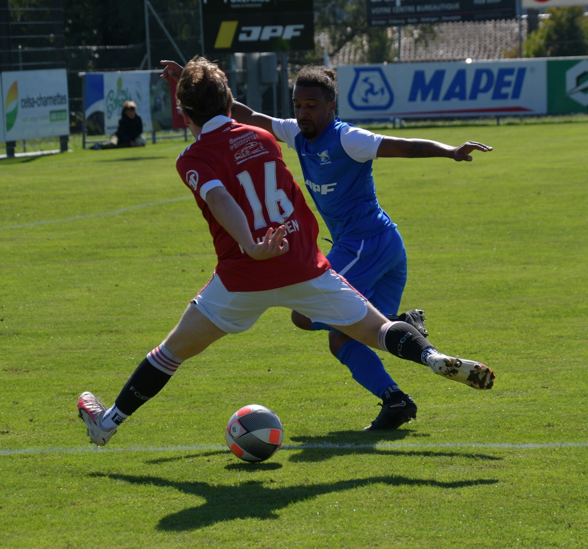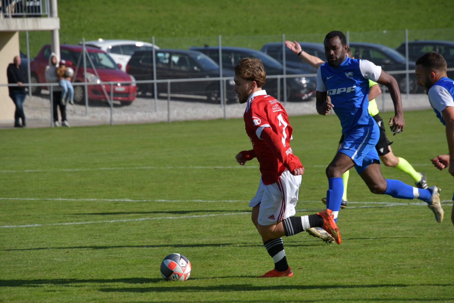 Le derby de la Gruyère, disputé lors de cette 5e journée du championnat de 2e ligue fribourgeoise, a vu l'équipe de Gumefens/Sorens dominer nettement le FC Haute-Gruyère dans une rencontre marquée par une froide bise. Dès le coup d'envoi, les joueurs de Gumefens/Sorens se sont précipités à l'assaut des buts adverses. Leurs efforts ont rapidement été récompensés grâce à un coup franc astucieusement joué aux abords des 20 mètres. Alors que la défense de Haute-Gruyère, peinait à se replacer, Batiste Maillard, bien décalé, n'a eu aucun mal à trouver le chemin des filets pour ouvrir le score dans une cage vide.