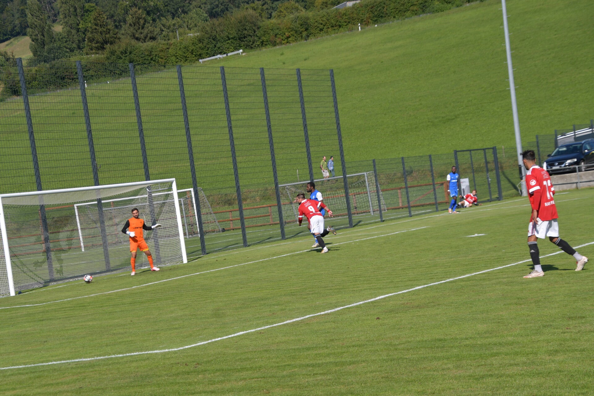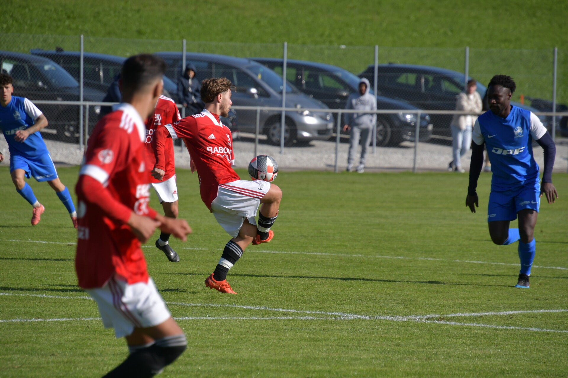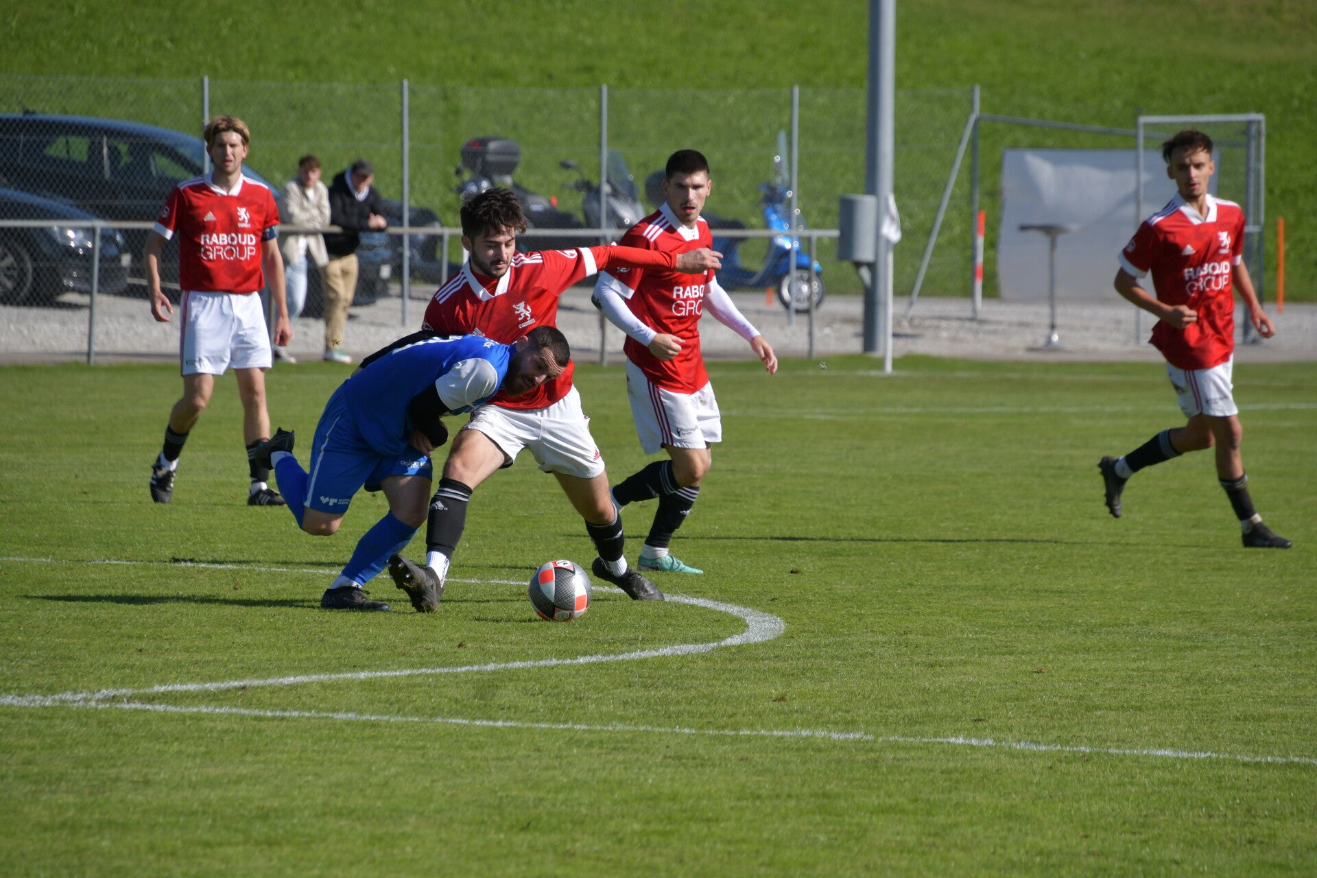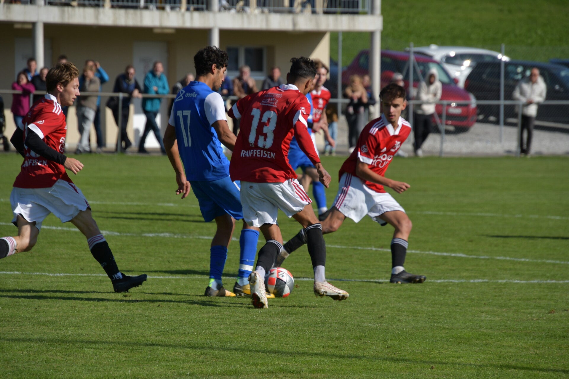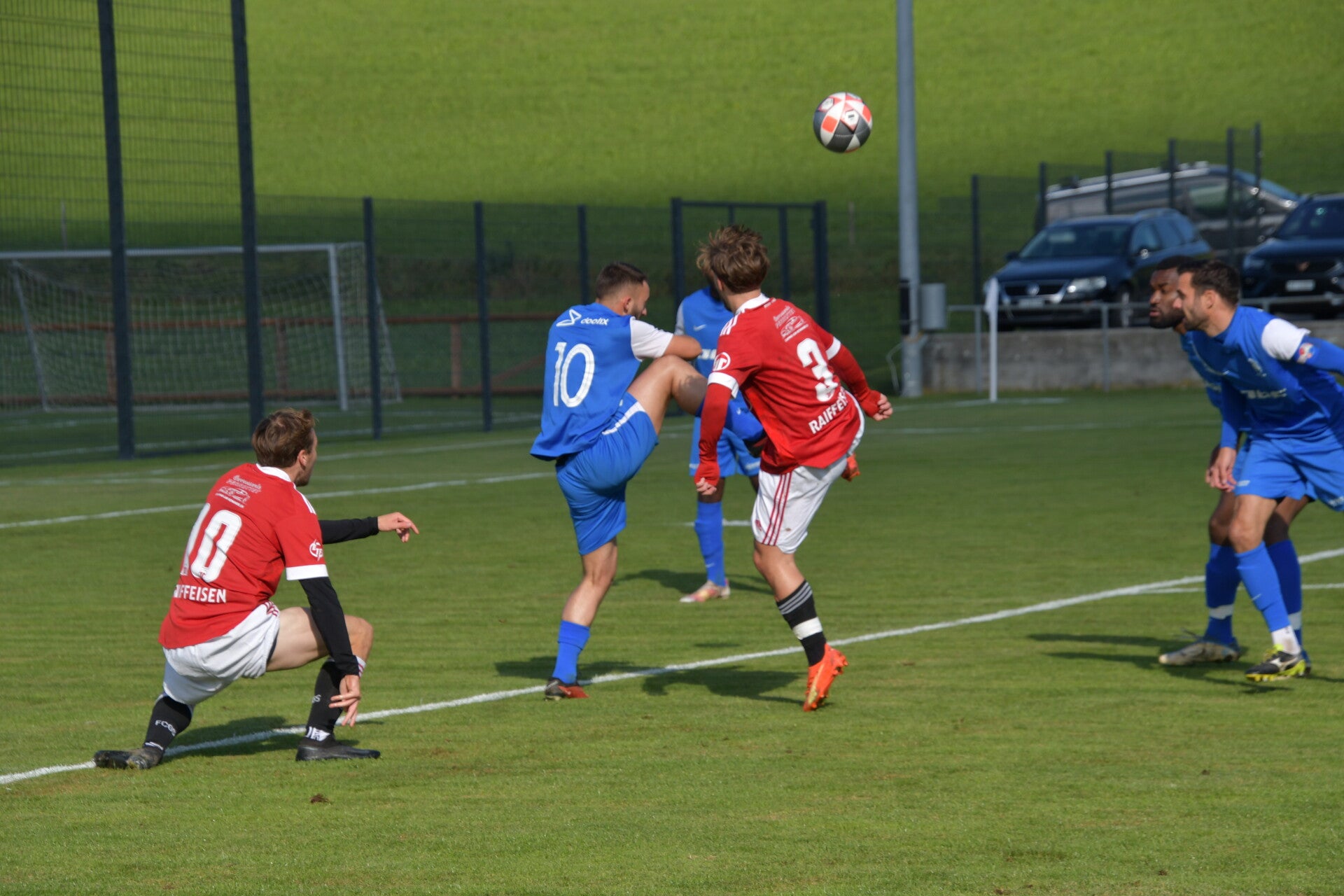 Le derby de la Gruyère, disputé lors de cette 5e journée du championnat de 2e ligue fribourgeoise, a vu l'équipe de Gumefens/Sorens dominer nettement le FC Haute-Gruyère dans une rencontre marquée par une froide bise. Dès le coup d'envoi, les joueurs de Gumefens/Sorens se sont précipités à l'assaut des buts adverses. Leurs efforts ont rapidement été récompensés grâce à un coup franc astucieusement joué aux abords des 20 mètres. Alors que la défense de Haute-Gruyère, peinait à se replacer, Batiste Maillard, bien décalé, n'a eu aucun mal à trouver le chemin des filets pour ouvrir le score dans une cage vide.