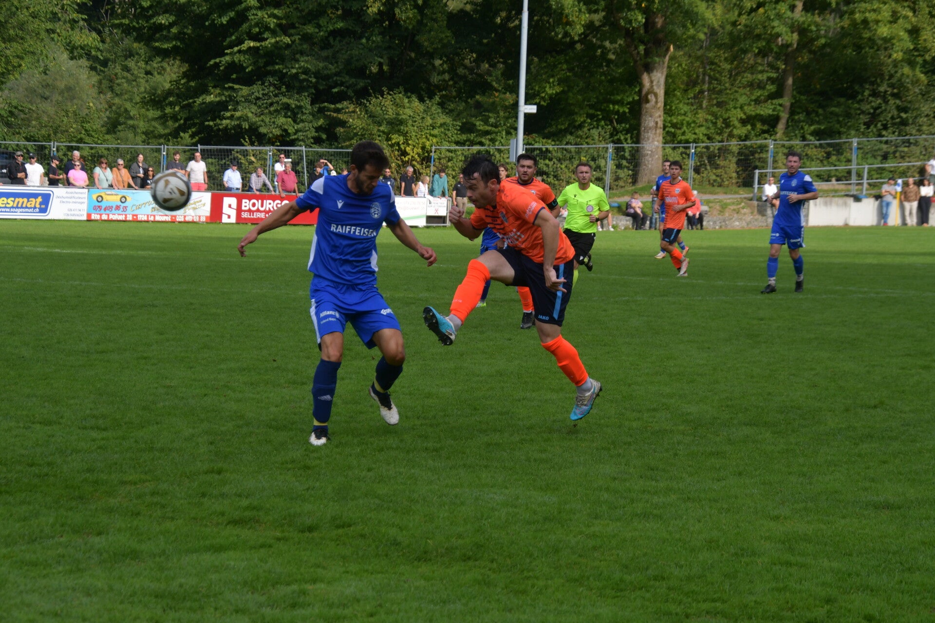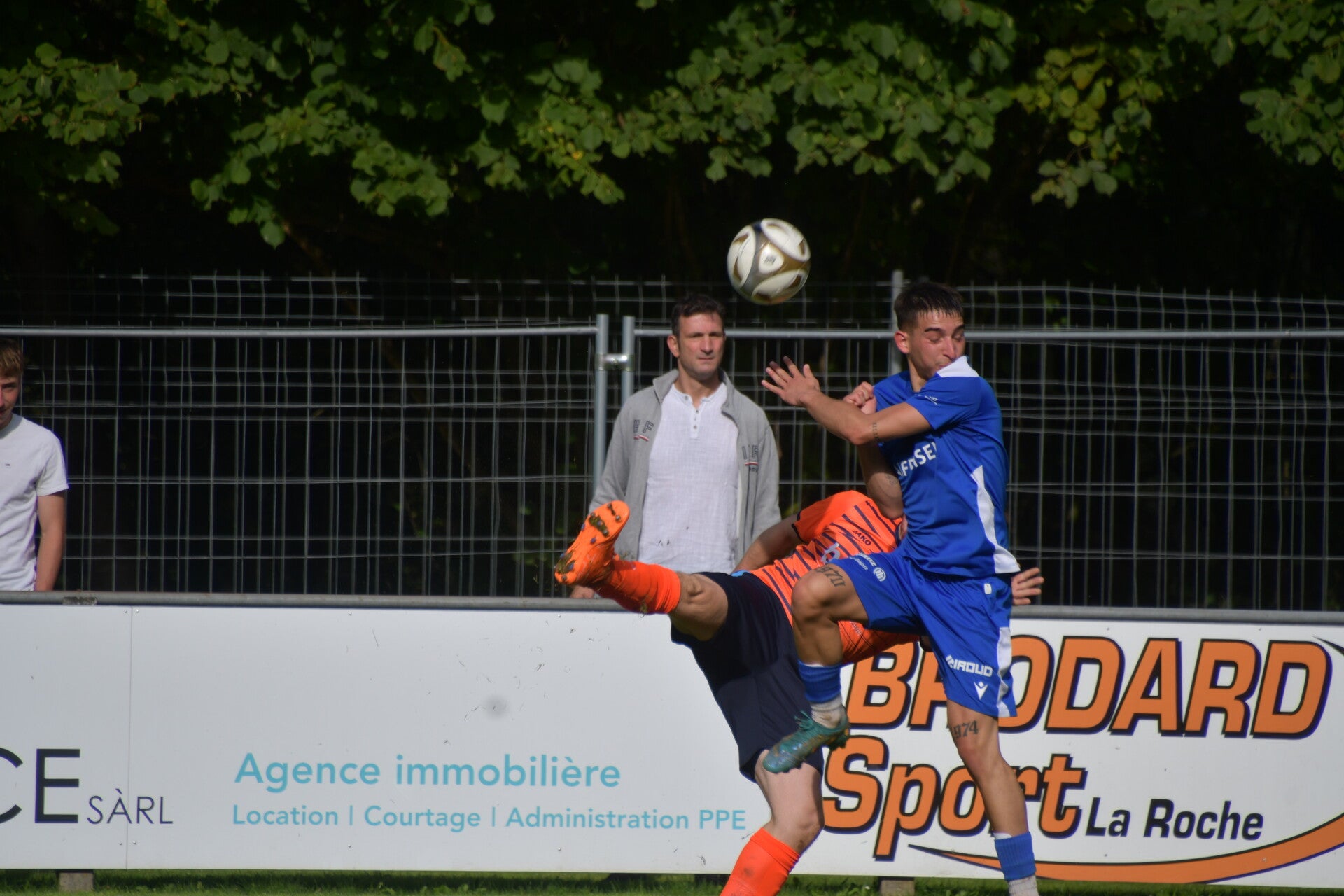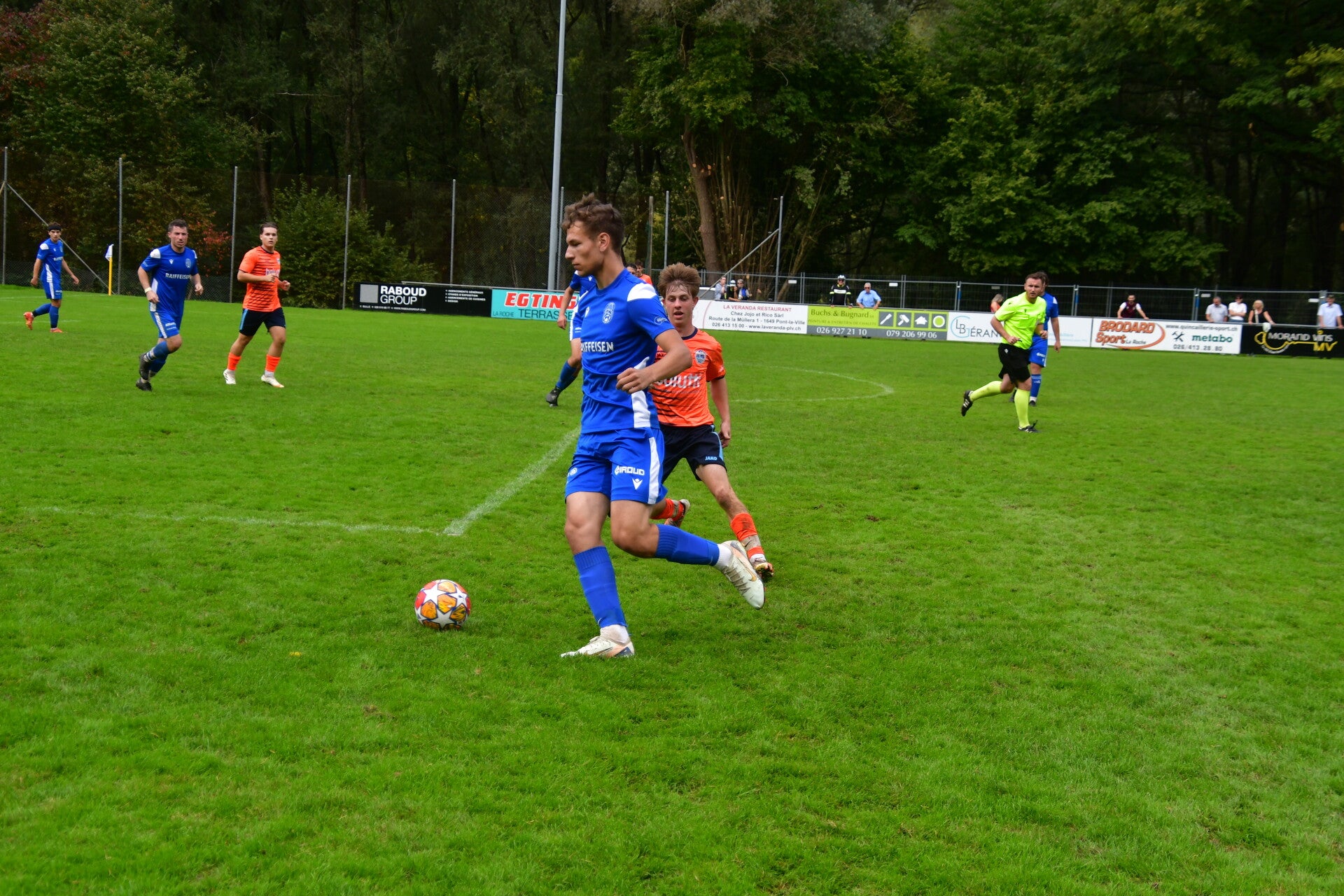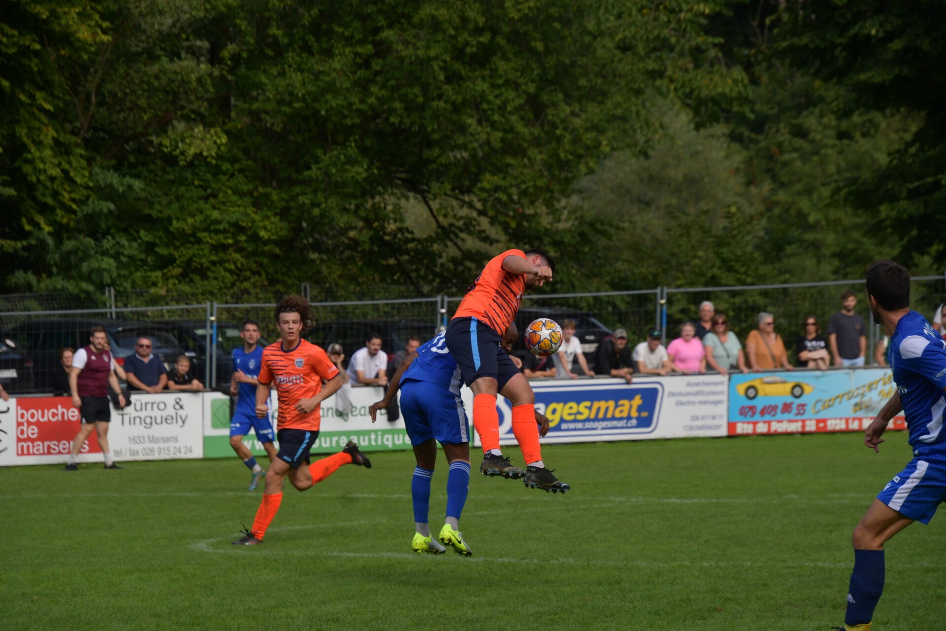 Match tendu entre les extrêmes du classement devant une centaine de spectateurs. Le leader Haute-Sarine a cru s’imposer grâce à Tiago Coutinho (69’), mais Sylvain Telley (75’) a offert un nul méritoire au dernier du classement. La rencontre a été marquée par 12 avertissements et l’expulsion de Baptiste Kolly (90’).