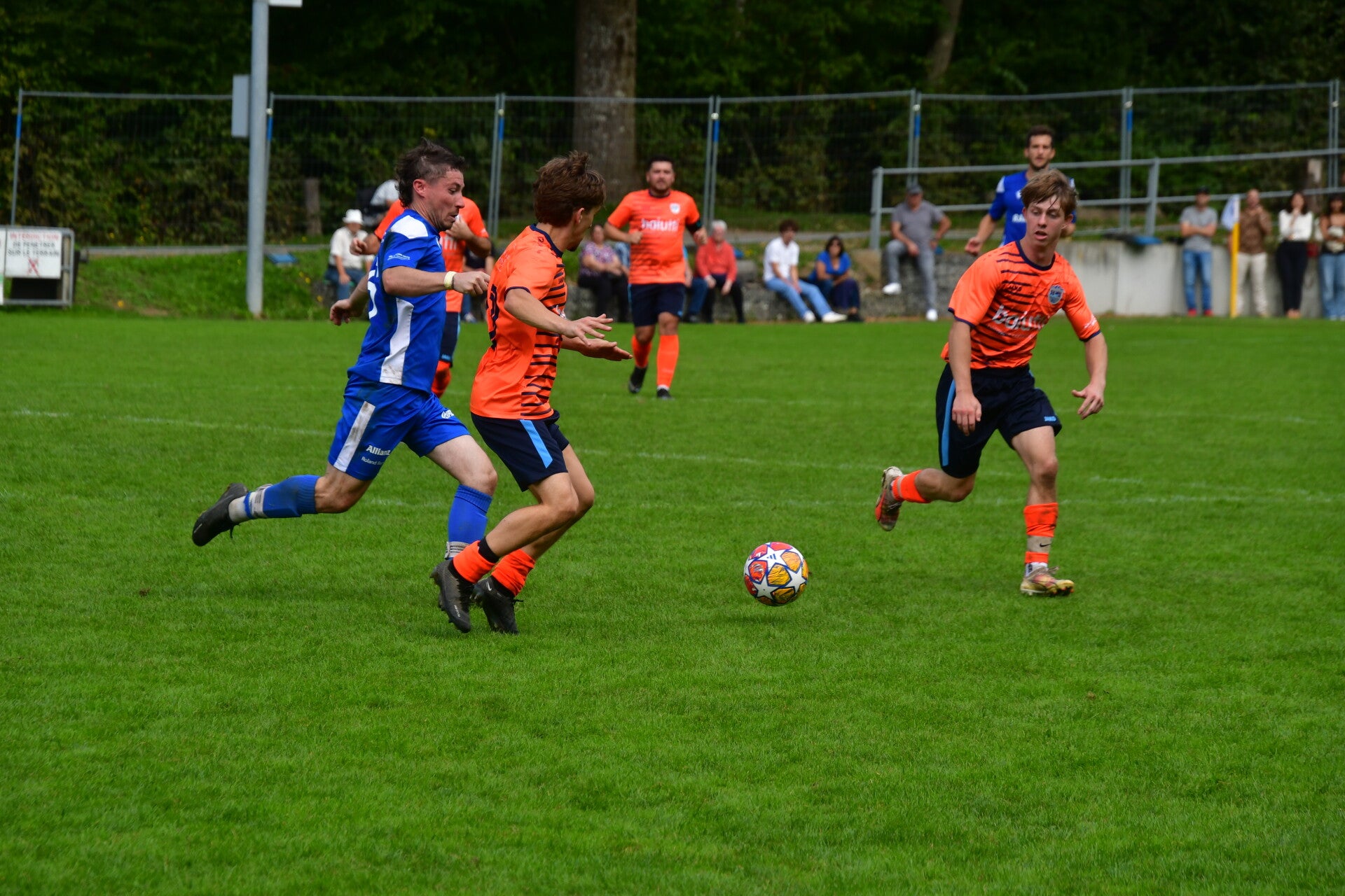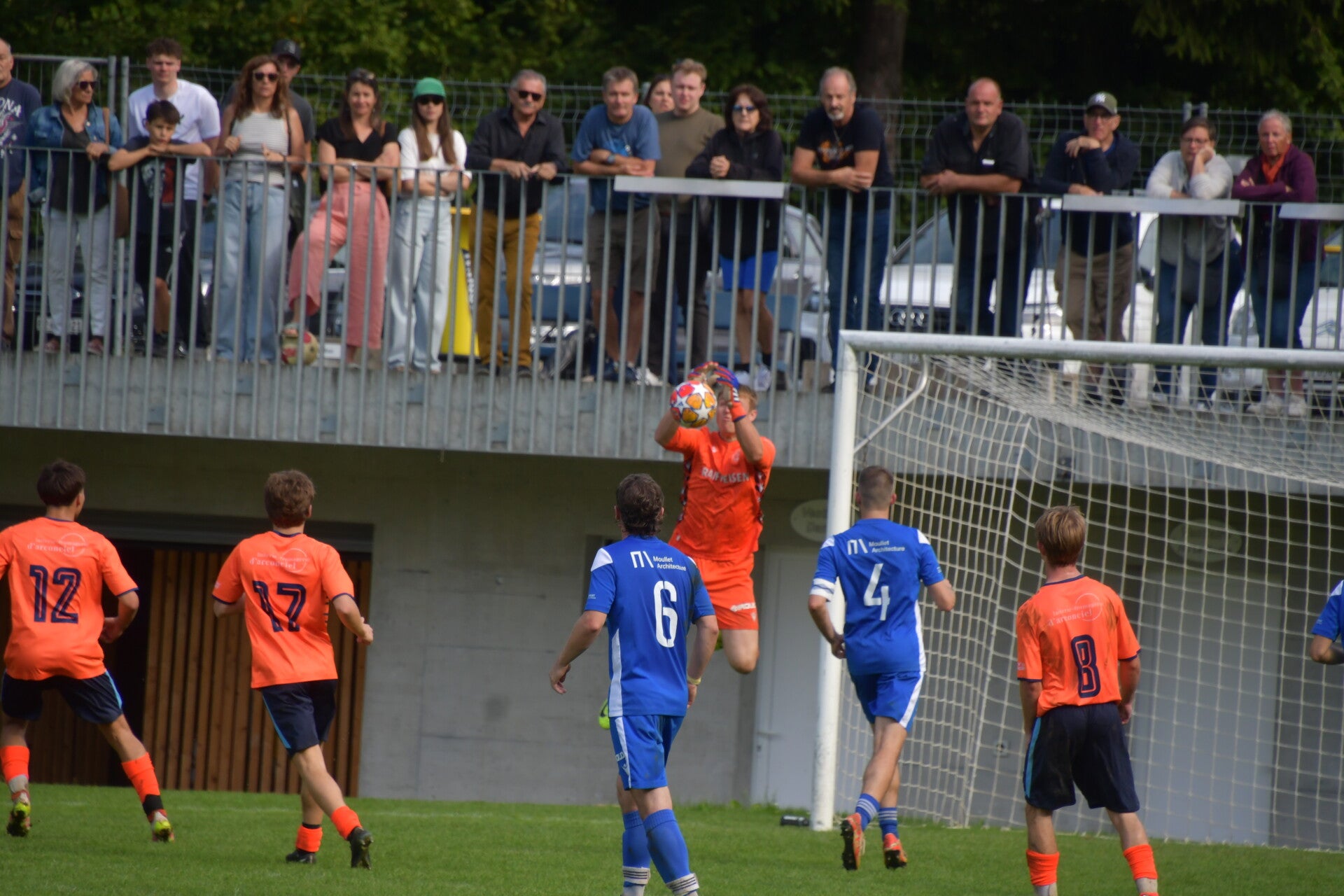 Festival de buts ! Estavayer s’impose dans un match fou grâce à Léo Zambelli (24’), Robin Nicolas Schorderet (28’), un but contre son camp d’Allan Raboud (38’) et Loukas-Emmanuel Fecha (51’). Charmey, pourtant combatif avec des réussites de Loïs Overney (16’), Théo Jaquet (56’) et David Uldry sur penalty (60’), repart bredouille.